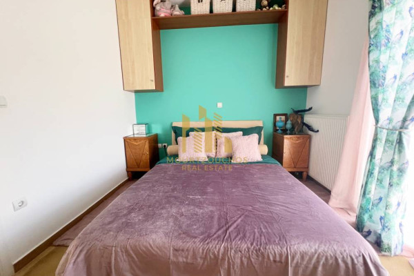 For sale in the Aigio area, in Temeni, a beautiful maisonette of 82 sq.m. on a 350 sq.m. plot is offered. This exceptional residence features autonomous oil heating, a fireplace, and air conditioning for your comfort. Its interior consists of an open-plan kitchen and living room, a bathroom, a WC, 2 sunny bedrooms, and a storage room.