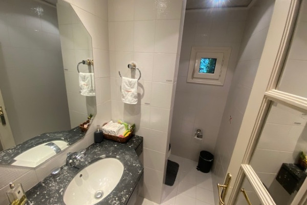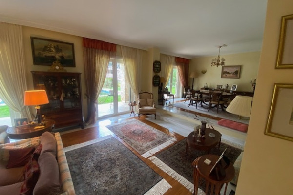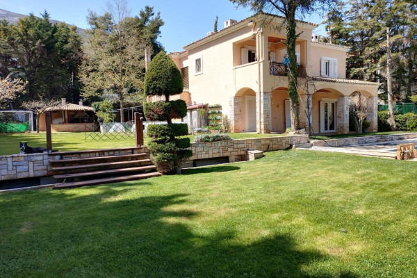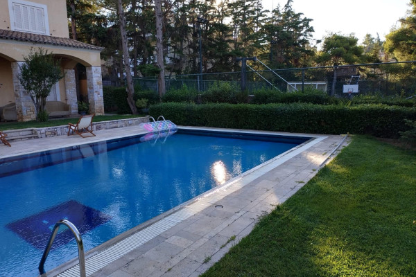 For Sale Unique Villa, Dionysos 930 sq.m. on a plot of 2,500 sq.m. Excellent corner detached house with a very large garden, swimming pool and facilities on a very good street of Dionysos. The plot has a large impressive frontage of 85m. corner with 25 m. approximately with a planted fence inside and outside, around the perimeter, swimming pool facilities, tennis and basketball court, large garden with comfortable play area, football, etc., vegetable garden, BBQ area and wood oven. Two more houses of 500 square meters can be built on the plot. The main residence is 330 sq.m. develops on two levels, ground floor and first floor, made with quality materials and offers all modern comforts. It also has underfloor heating. On the ground floor we have a large reception area, a living room, with an impressive marble fireplace, a dining area, with direct access to a large terrace and the front garden with the pool, while from the dining room we have access to a large bright kitchen with a daily living area and a fireplace. The Kitchen has built-in MIELE appliances and two freezers On the ground floor we also have guest WC, guest room with en suite bathroom. There is an elevator to the basement. Upstairs we have 4 bedrooms with a bathroom and another large Master bedroom with Fireplace, Dressing room and En suite large bathroom with jacuzzi and shower cabin. At the entrance of the Master we pass through a beautiful hall with glass bricks that adds brightness and looks through the glass to the patio area of ​​the large internal staircase. Also on the floor we have an open space that can be used as an office or even as a casual sitting room. On the lower level 600 sq.m. heated, we have plenty of utility spaces, a very large garage that can accommodate 10 cars, an apartment with a bedroom, a bathroom and a kitchenette for auxiliary staff, many storage rooms, areas for billiards, ping pong, as well as a home cinema living room with a configured bar area, extra space for an office, separate designed space for a gym, bathroom with sauna. The gym is fully equipped with exercise machines. Distances: 900m. from the Safe House, close to schools and sports facilities, 7' (minutes) from the market of Drosia and 17' (minutes) from the sea (Nea Makri) Price: €1,800,000 ID 928357