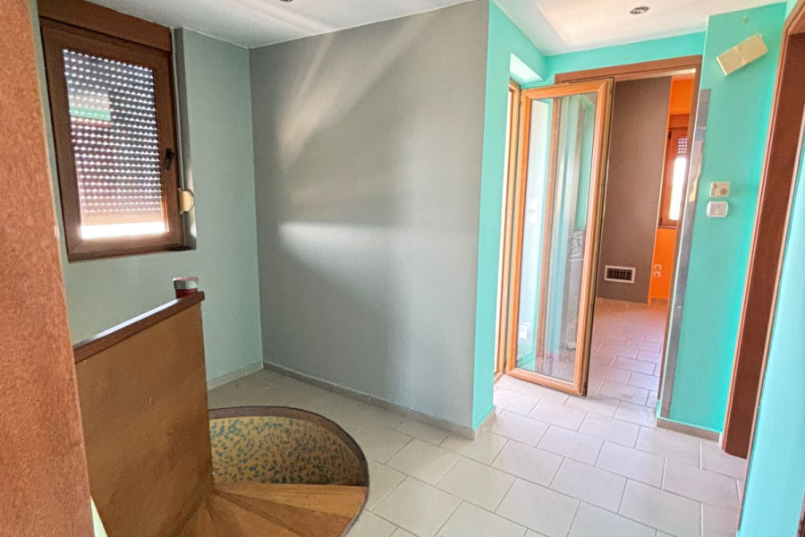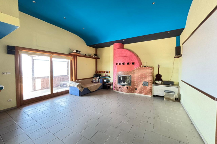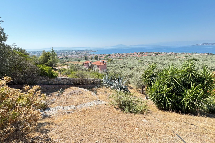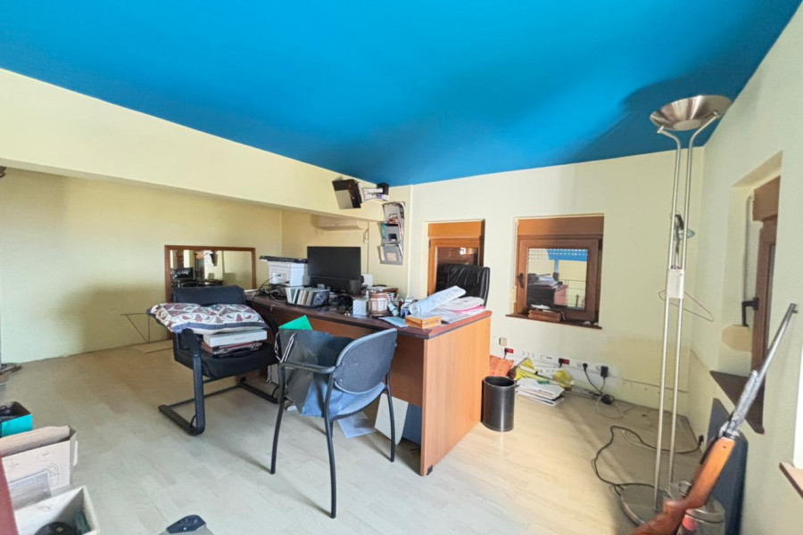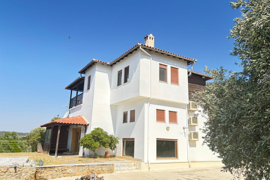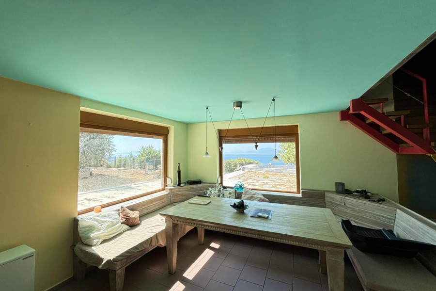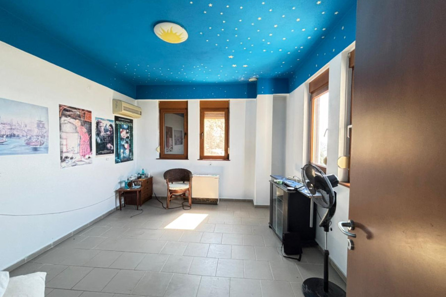 In Agria, Volos, a beautiful 160 sq.m. villa is available for sale, set on a 4,800 sq.m. plot, priced at €450,000. The ground floor features an open-plan layout that includes a kitchen, living room, and dining area, as well as a bathroom. An additional level functions as a home office.