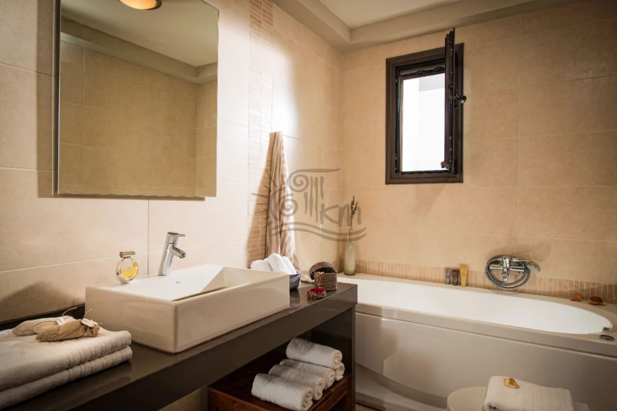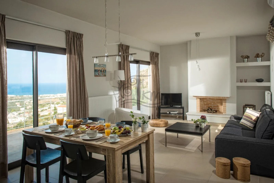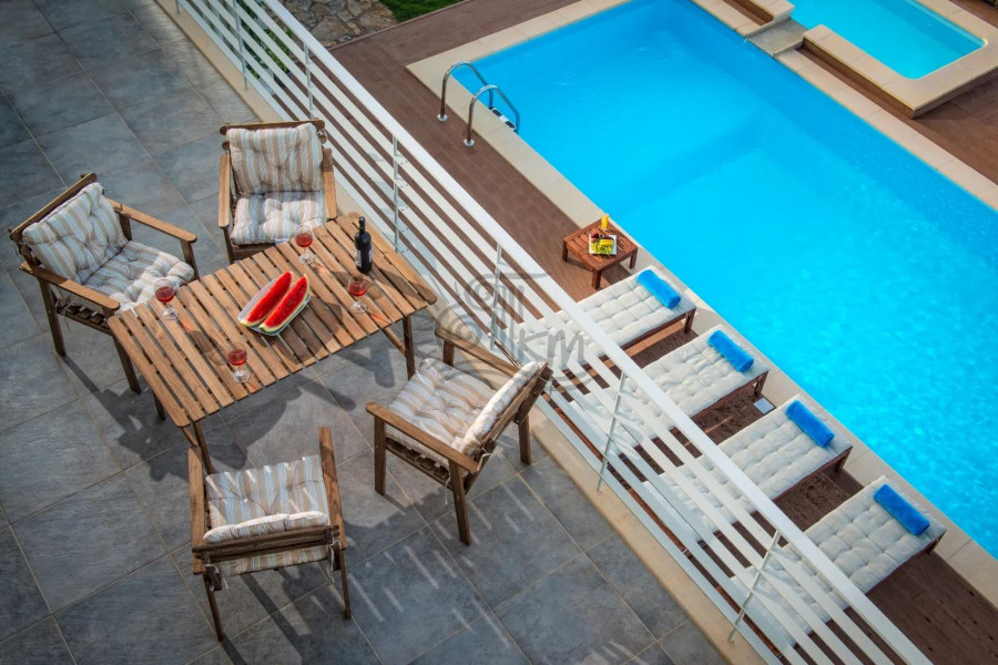 Heraklion, Piskopiano. A unique villa with a total area of 130 sq m is for sale on a plot of 378 sq m with unobstructed sea views. Specifically, it is developed on three levels and offers a bright open space with a living room with fireplace, dining room and kitchen, three bedrooms, a bathroom and a WC. In addition, it has a well-designed outdoor area with a swimming pool, children's pool, lawn, outdoor dining area and sun loungers. Finally, it is equipped with autonomous heating via air conditioners and parking space. It is an ideal choice for both home ownership and tourist exploitation thanks to its privileged location near the sea and easy access to the new international airport of Heraklion - Kastelli.