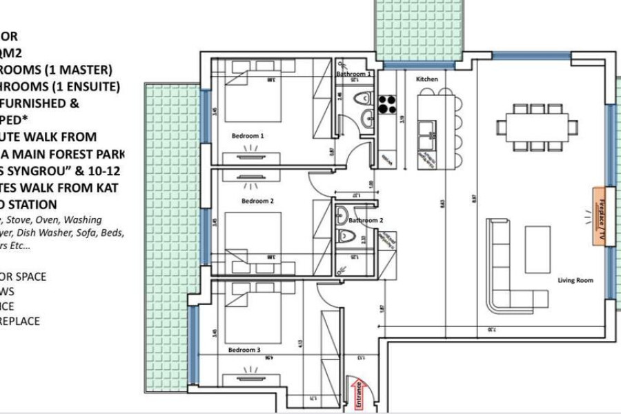 For sale under construction apartment of 136 sq.meters in Athens. The apartment is situated on the in der 1. Etage. It consists of 3 bedrooms, living room with kitchen, 2 shower WC. Flat has front layout. A view of the city, the forest opens up from the windows. There are: a fireplace, air conditioning, awnings. The owners will be leaving the furniture with the sale. Building has an elevator.