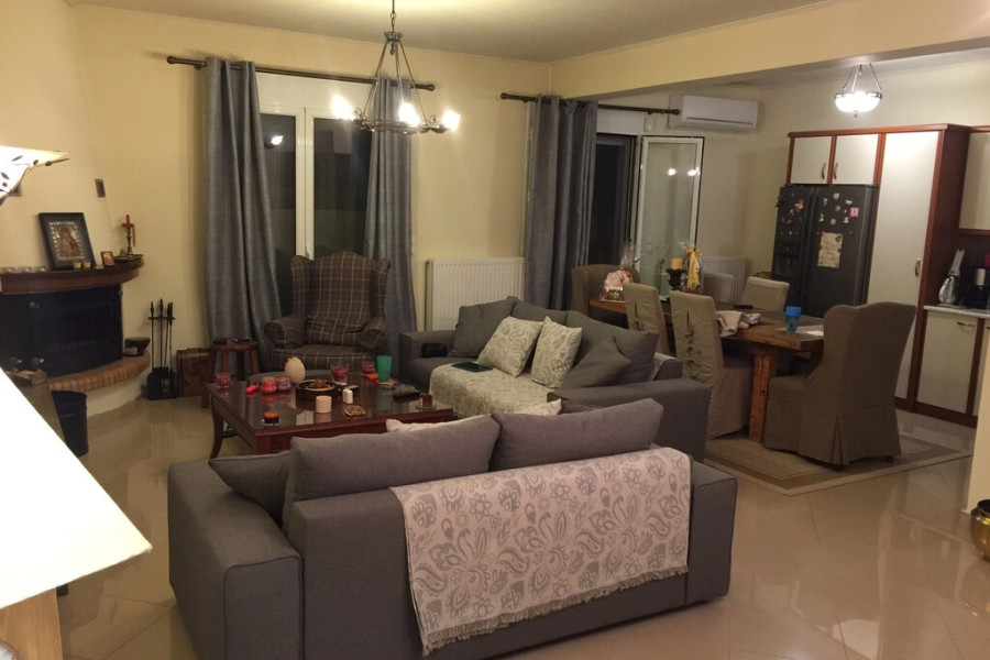For sale maisonette of 190 sq.meters in Athens. The maisonette has 2 levels. Erdgeschoss consists of living room with kitchen, one WC. 1. Etage consists of 3 bedrooms, one kitchen, 2 shower WC. There are: solar panels for water heating, a fireplace, air conditioning, awnings, heating. There is an alarm system installed. Extras included with the property: garden, garage.