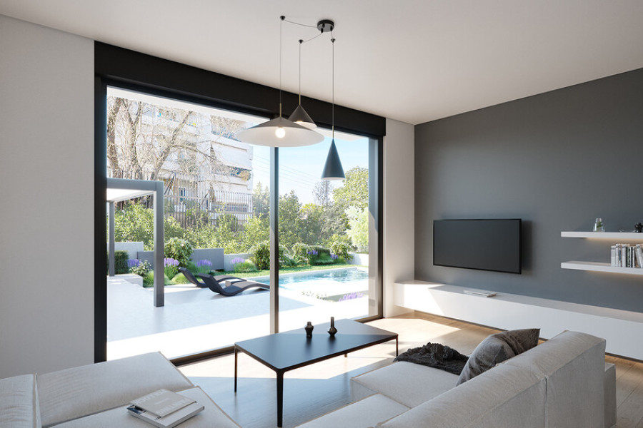 For sale under construction duplex of 164 sq.meters in Athens. The duplex is situated on semi-keller and erdgeschoss. Semi-Keller consists of 2 bedrooms, one bathroom. Erdgeschoss consists of 2 bedrooms, living room with kitchen, one bathroom, one WC. There are: a fireplace, heating. Building has an elevator. There is an alarm system installed. Extras included with the property: parking space, garden. The property boasts a swimming pool of private use.