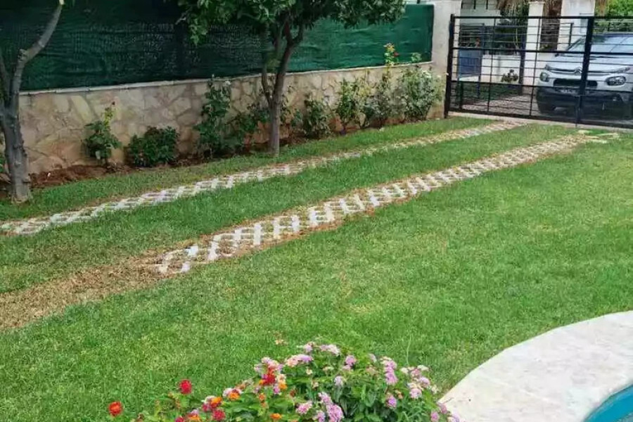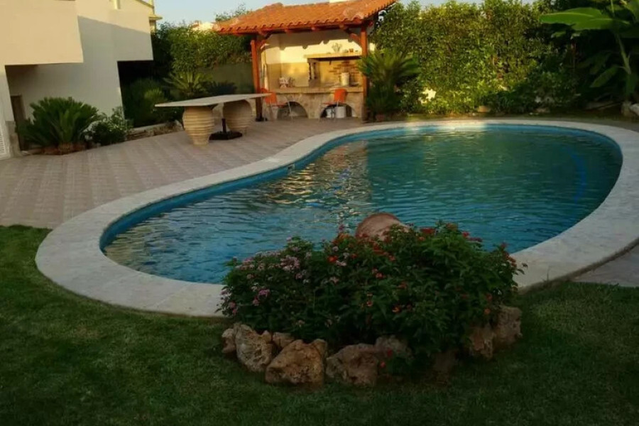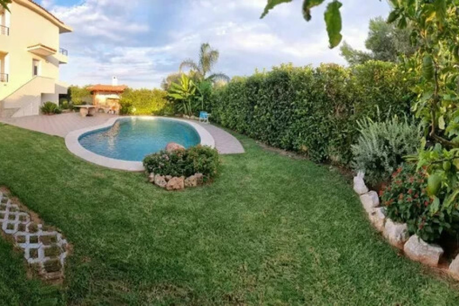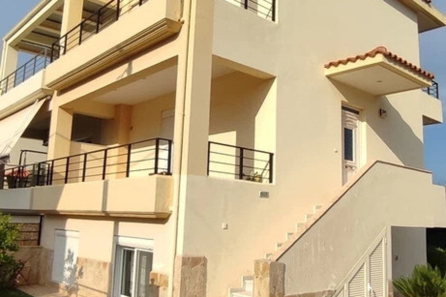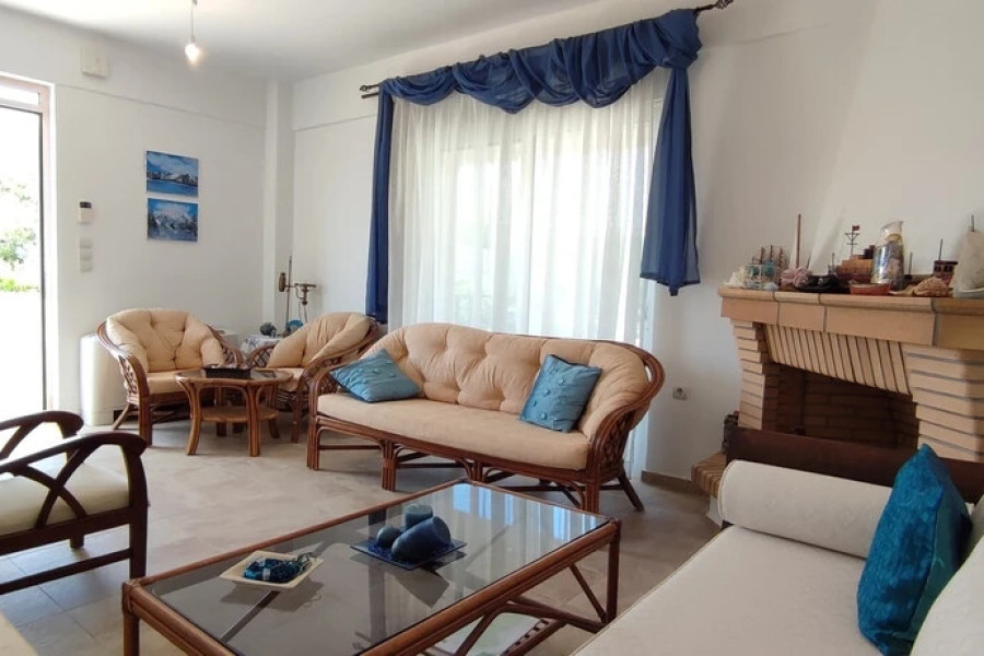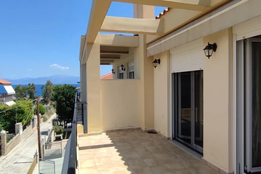 For sale maisonette of 118 sq.meters in Eastern Peloponnese. The maisonette has 3 levels. Semi-Keller consists of one bedroom, living room with kitchen, one shower WC. Erdgeschoss consists of living room with kitchen, one WC. 1. Etage consists of 2 bedrooms, one shower WC. A view of the sea opens up from the windows. There are: solar panels for water heating, a fireplace, air conditioning, heating, a barbecue area. The owners will be leaving the furniture with the sale. There is an alarm system installed. Extras included with the property: parking space, garden. The property boasts a swimming pool of private use.