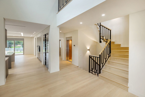 On the first floor (112.85 sq.m.) there are three bedrooms, each with its own bathroom, hallway, disabled lift and internal staircase, as well as two semi-outdoor spaces of 25.35 sq.m. and attic 13.05 sq.m. The attic of the roof has a surface of 22.22 sq.m. and offers additional functionality and flexibility of use.
