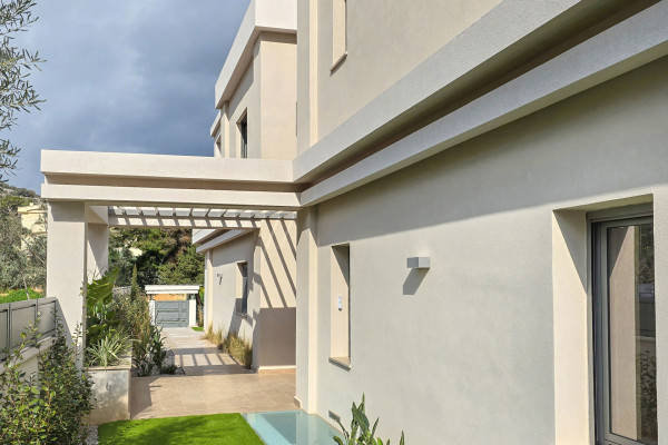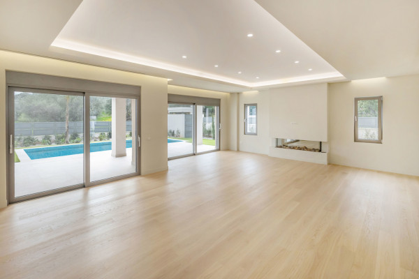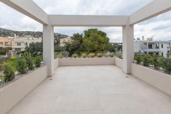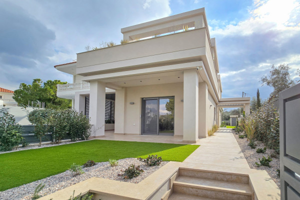 Imposing detached house for sale in Vari - Varkiza, total area 460 sq.m., on a plot of 460 sq.m., built in 2025, in excellent condition. On the ground floor (141.40 sq.m.) there is the entrance, the living room, the dining room, the kitchen-living room, corridor, WC, internal staircase and disabled lift. There are also two semi-outdoor areas (20.52 sq.m.), a terrace (8.88 sq.m.), two pergolas and an outdoor pool of 26.25 sq.m. in the open space, with a garden that offers privacy and relaxation.