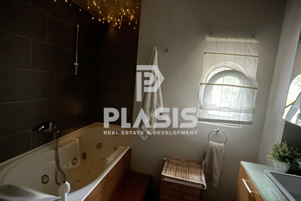 Maisonette For rent, floor: Elevated Ground Floor, 1st (2 Levels), in Markopoulo - Porto Rafti. The Maisonette is 140 sq.m. and it is located on a plot of 260 sq.m.. It consists of: 3 bedrooms, 2 bathrooms, 1 wc, 1 kitchens, 1 living rooms and it also has 2 parkings (2 Open). The property was built in 2005 and it was renovated in 2019. Its heating is Autonomous with Oil, Air conditioning, Solar water system, Boiler are also available, it has Aluminum frames with Double glazed windows, the energy certificate is: D and its floors are Wooden. The property's status is: Renovated, Excellent condition, 800 Meters from seaside, 12 Km from airport, it has Sea, Mountain, Unobstructed view and it has East orientation. The Maisonette is Painted, On Corner, With Facade, On Highway, Bright, Airy, Luxury and it also has the following unique features and advantages: Window Screens, Jacuzzi, Internal staircase, Garden, Security door, CCTV, Security alarm, Security cameras, Internet, No shared expenses, Satellite Receiver, Night stream, Automatic watering, Grass, Trees, Pets allowed, Quiet neighborhood, Porch. Price: €1,400. Plasis Real Estate Glyfada, contact phone: 2109601909, email: