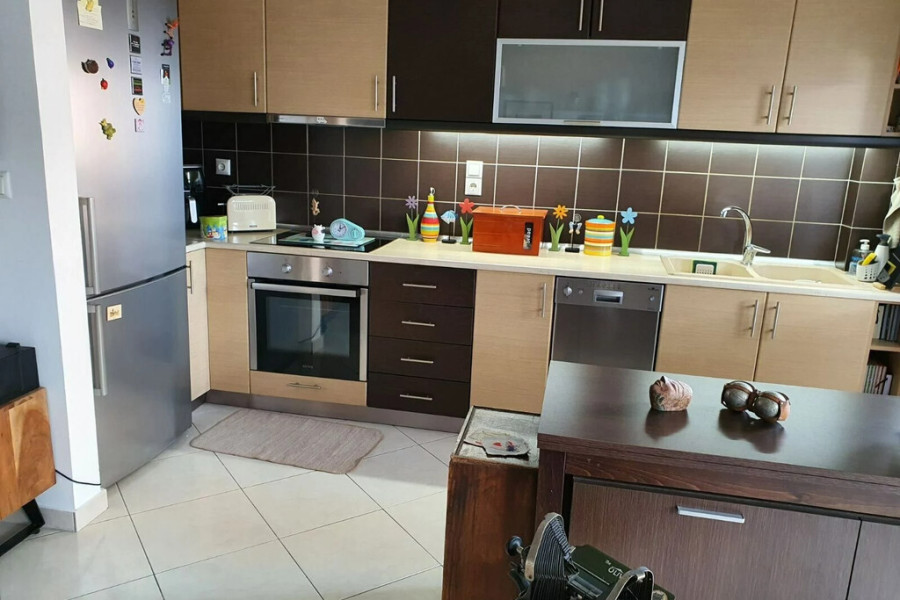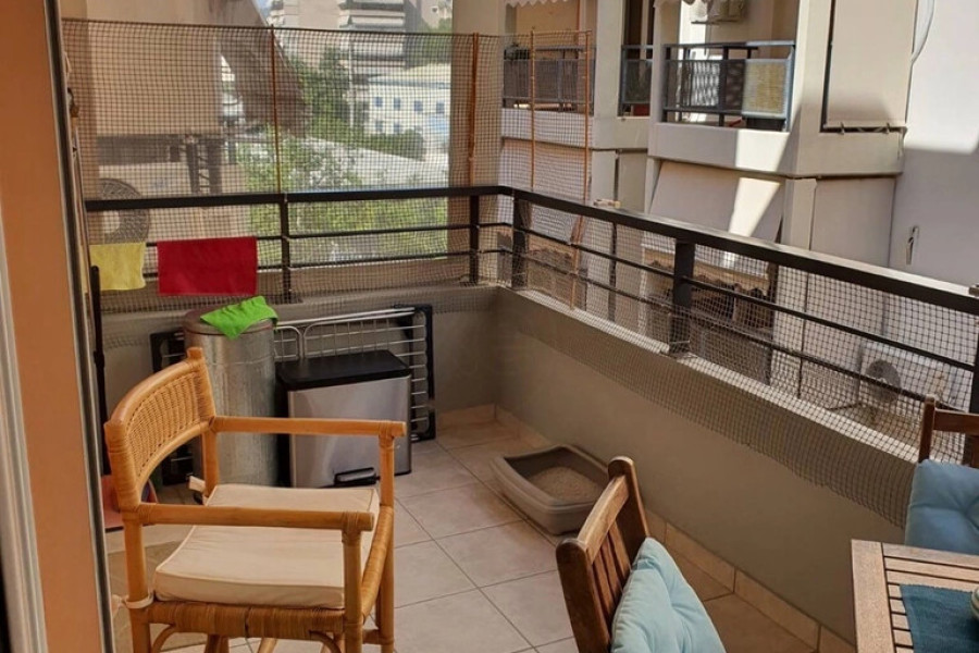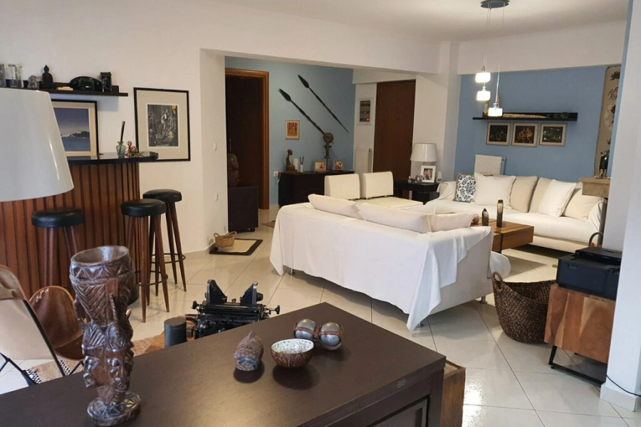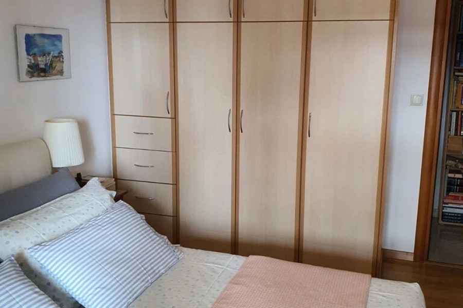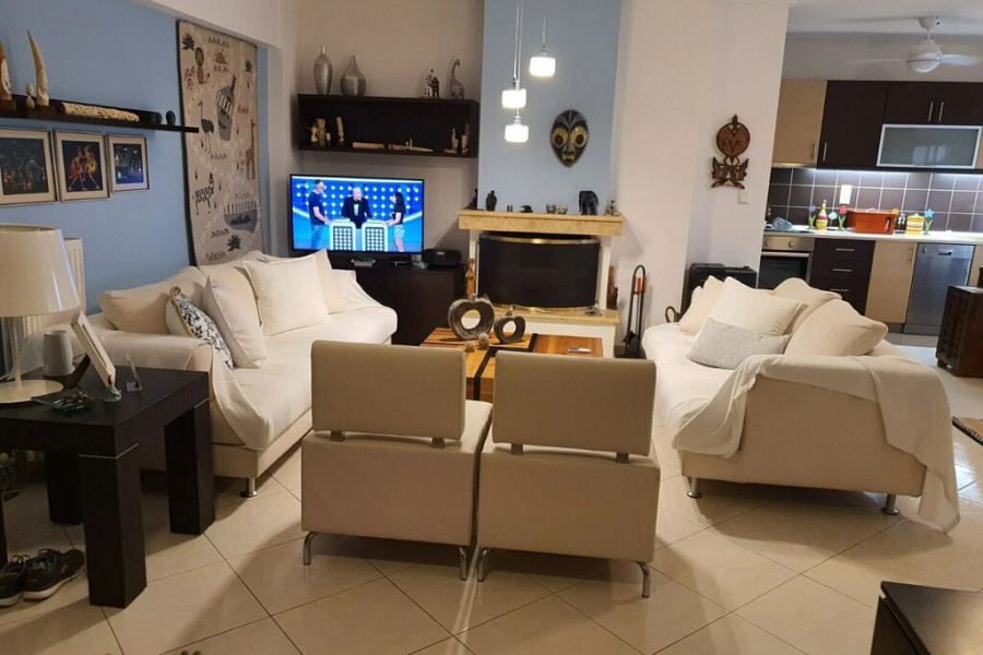 For sale apartment of 83 sq.meters in Athens. The apartment is situated on the in der 3. Etage. It consists of 2 bedrooms, living room with kitchen, one bathroom, one WC. Flat has double-frontage layout. There are: solar panels for water heating, a fireplace, air conditioning, awnings, heating. Building has an elevator. Extras included with the property: garage.