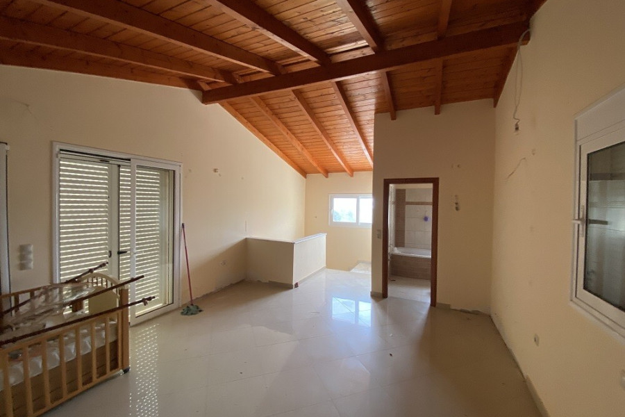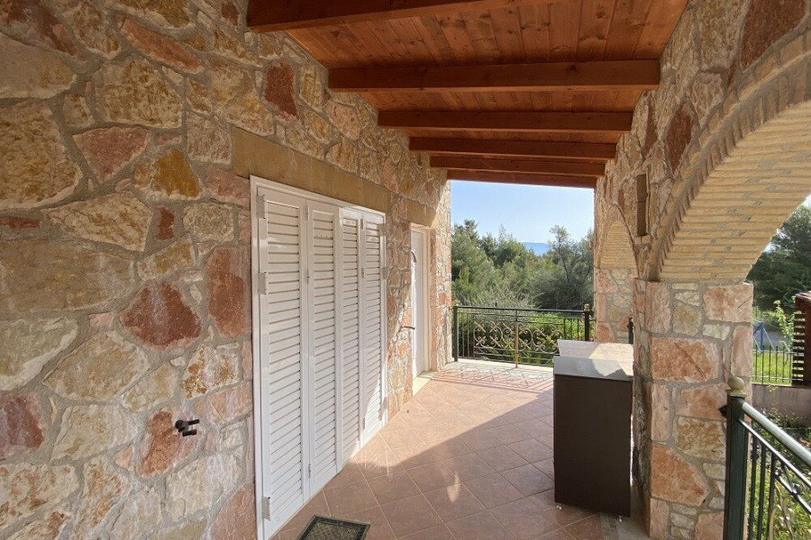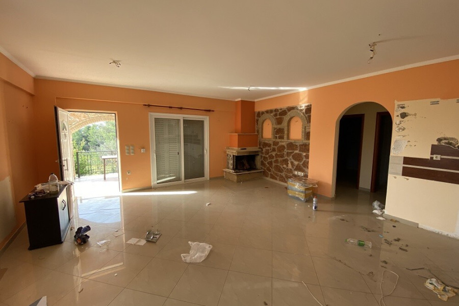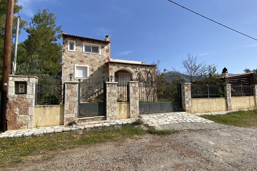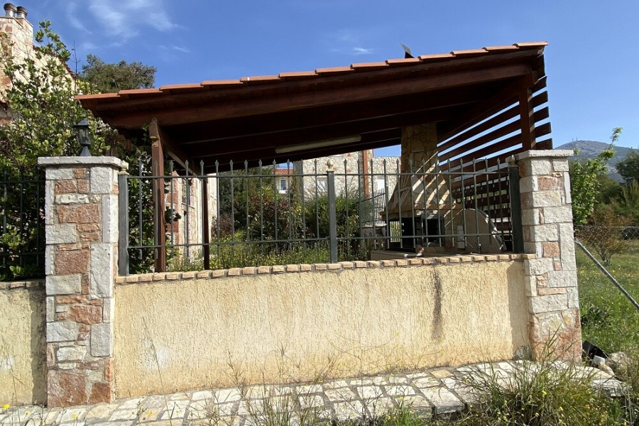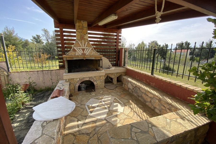 For sale 3-storey house of 156 sq.meters on the Euboea island . Semi-Keller consists of one storeroom. Erdgeschoss consists of living room, one kitchen, one bathroom. 1. Etage consists of 3 bedrooms, one bathroom. There are: a fireplace, a barbecue area. Extras included with the property: parking space, garden.