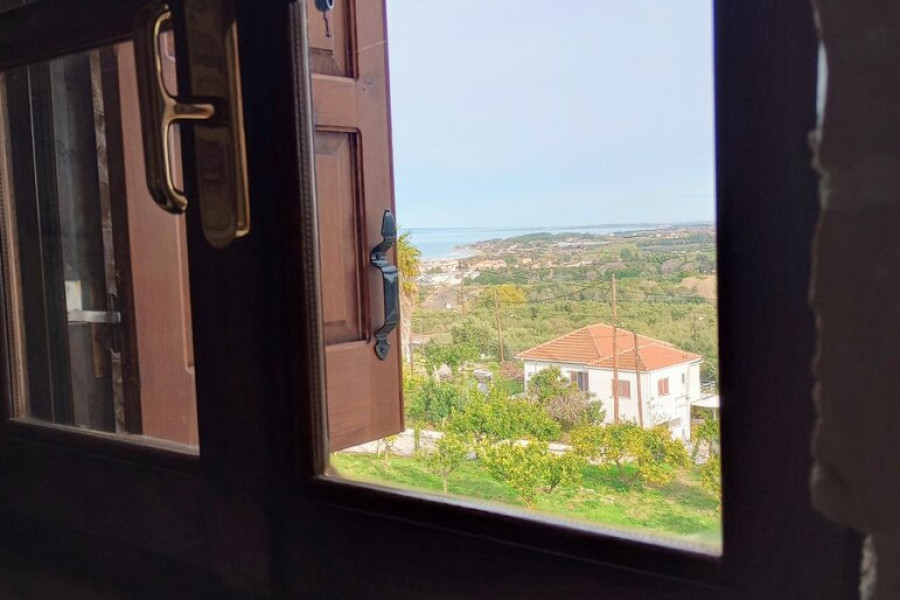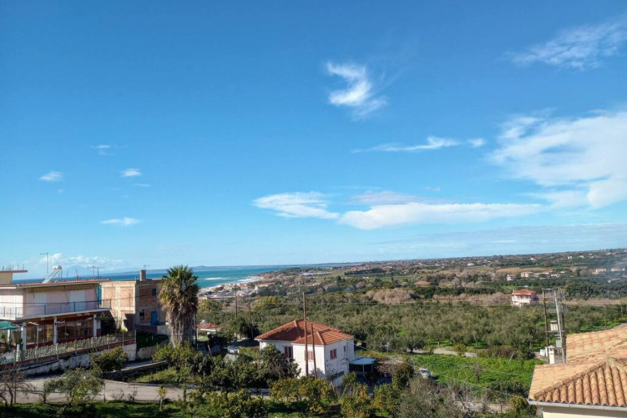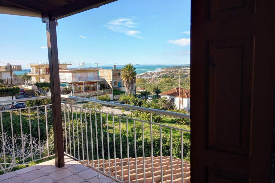 For sale 2-storey house of 153 sq.meters in Peloponnese. Erdgeschoss consists of living room, one kitchen, one bathroom, one storeroom. 1. Etage consists of 3 bedrooms, 3 bathrooms. A magnificent view of the sea, the mountain opens up from the windows. There are: solar panels for water heating, a fireplace, air conditioning, heating. Extras included with the property: parking space.
