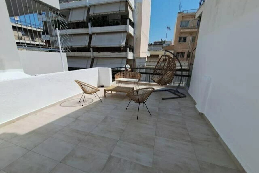 For sale maisonette of 123 sq.meters in Athens. The maisonette has 3 levels. Erdgeschoss consists of living room, one kitchen, one shower WC, one storeroom. 1. Etage consists of 2 bedrooms, one shower WC, one office. 2. Etage consists of one bedroom. A magnificent view of the sea opens up from the windows. There are: air conditioning, awnings, heating. The owners will be leaving the furniture with the sale.