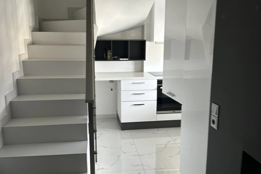 For sale maisonette of 102 sq.meters in Athens. The maisonette has 2 levels. 5. Etage consists of 2 bedrooms, living room, one kitchen, one shower WC. 6. Etage consists of one bedroom, one shower WC. There are: solar panels for water heating, a fireplace, air conditioning, heating. Building has an elevator. Extras included with the property: garage.