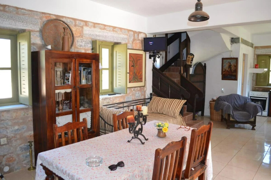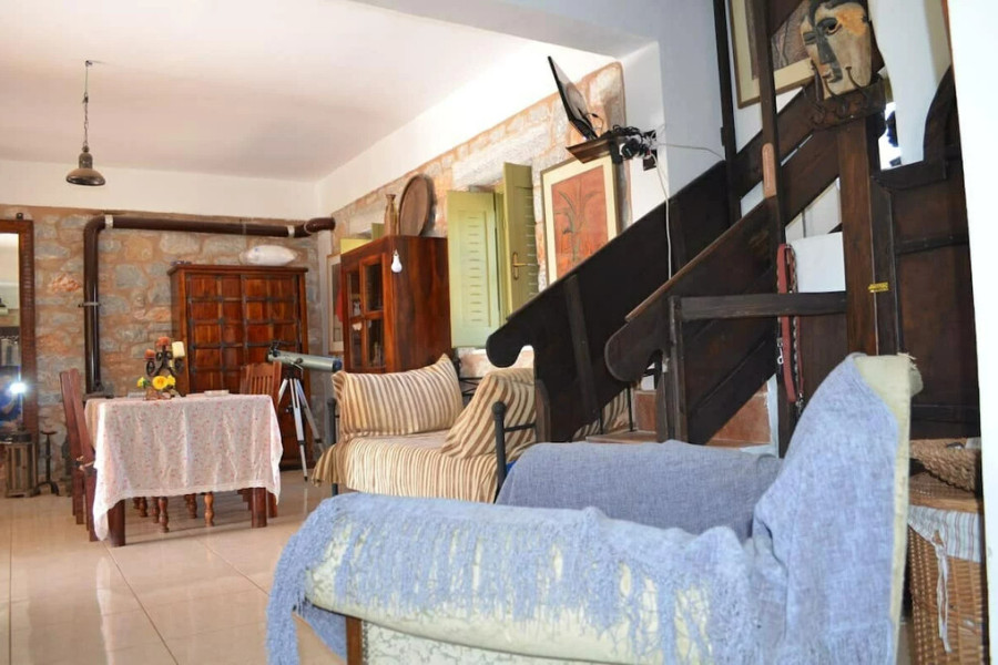 For sale building of 120 sq.meters in Peloponnese. The building has 2 levels. Erdgeschoss consists of living room with kitchen, one bathroom, one WC. 1. Etage consists of 3 bedrooms, one shower WC, one WC. There are: a fireplace, heating. The owners will be leaving the furniture with the sale. Extras included with the property: parking space, garden.