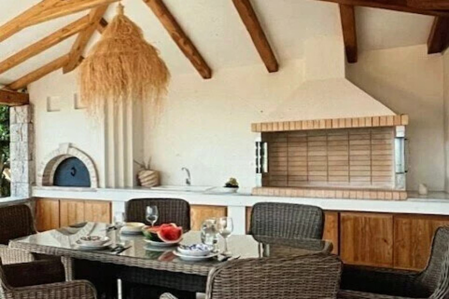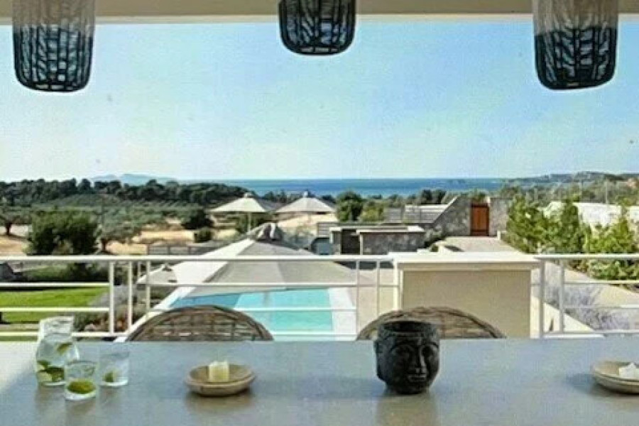 Amazingly beautiful detached houses in Porto Heli on an amphitheater plot with sea view, large swimming pool - 12 x 4, 5 using natural salt and no chemicals - tree house 2, 5 x 2,5 - waterfall with stream and lake lit with LEDs, covered area 30 sq.m. living room - dining room with bbq and wood oven. It also has a huge well-kept garden with lawn (there is a well with very good water quality), olive trees, many plants and flowers, covered parking for 4 cars, and much more