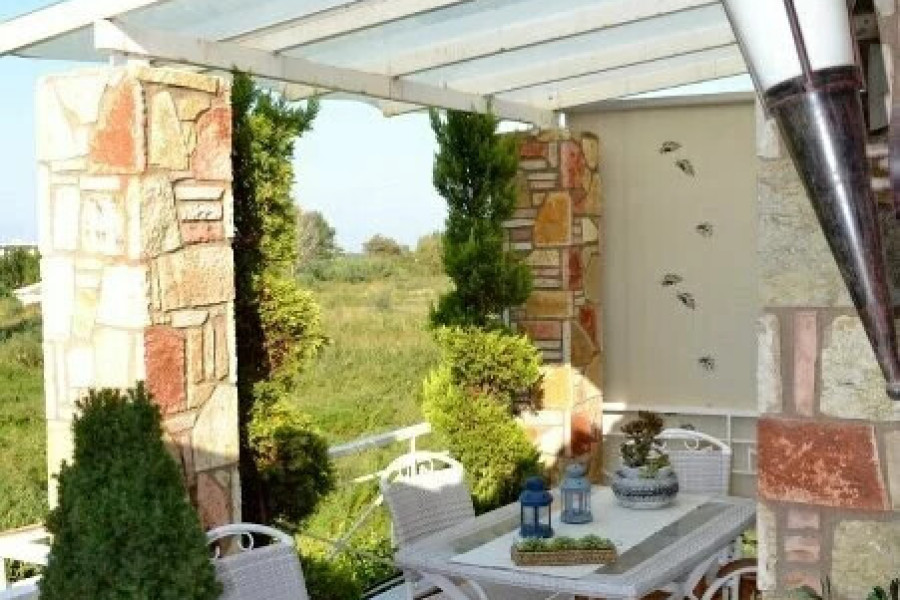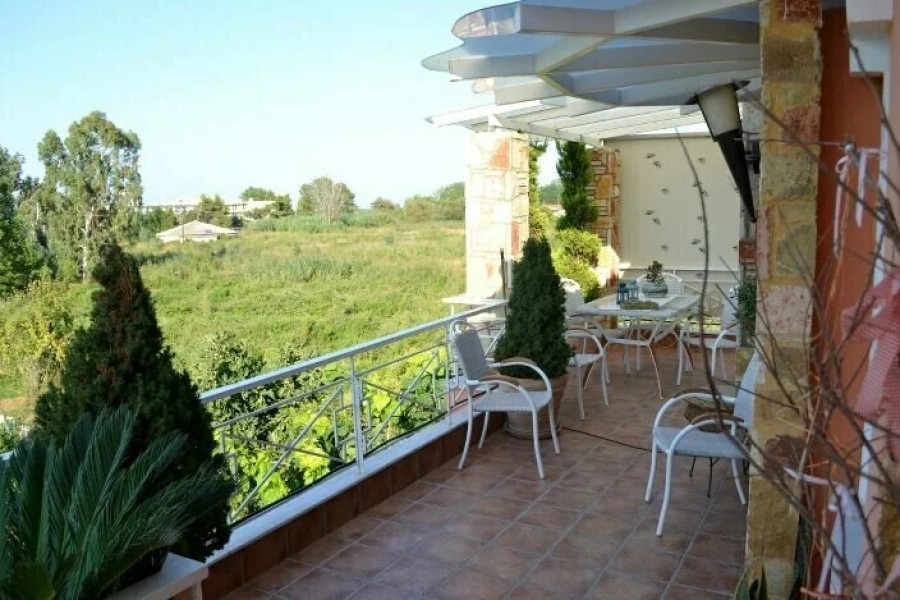 For sale 1-storey house of 450 sq.meters in Peloponnese. A magnificent view of the mountain opens up from the windows. There are: solar panels for water heating, a fireplace, air conditioning, awnings, heating, a barbecue area. The owners will be leaving the furniture with the sale. Extras included with the property: parking space, garden.