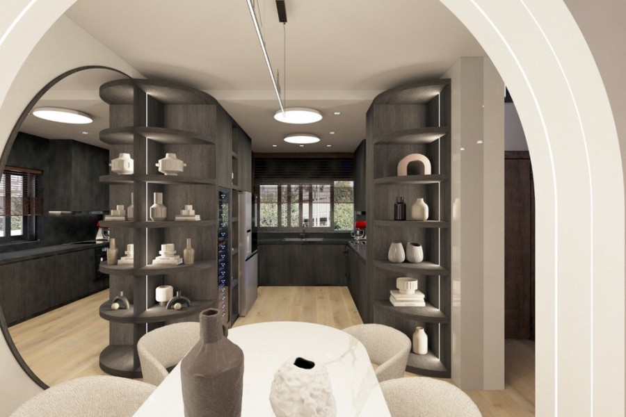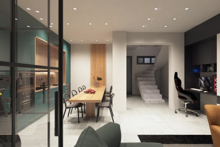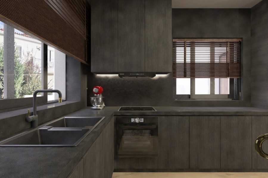 For sale under construction maisonette of 208 sq.meters in Athens. The maisonette has 3 levels. Semi-Keller consists of one bedroom, one kitchen, one shower WC, one office. Erdgeschoss consists of living room with kitchen. 1. Etage consists of 3 bedrooms. A magnificent view of the city, the mountain, the forest opens up from the windows. There are: a fireplace, air conditioning, heating. There is an alarm system installed. Extras included with the property: parking space, garden.