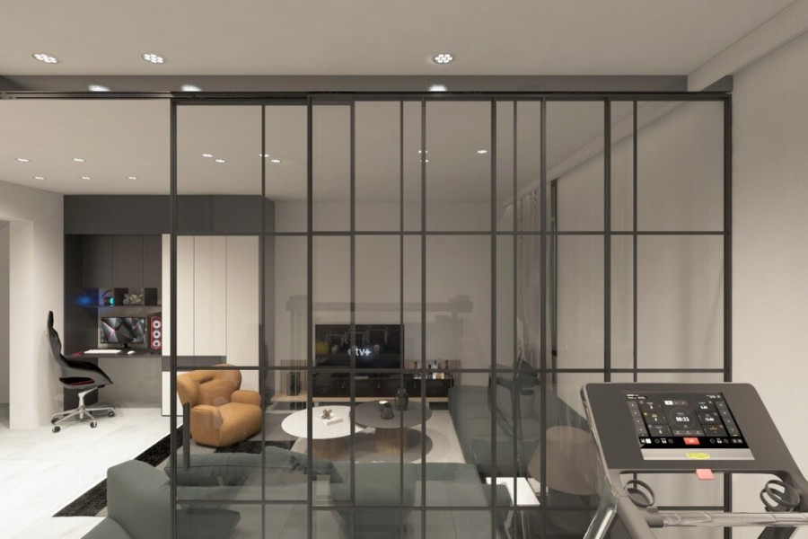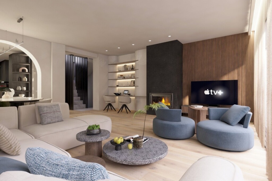 It is a smart home, energy-efficient fireplace, thermal facade, view of the private garden
