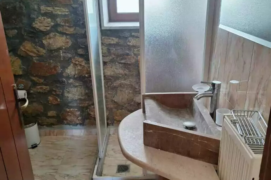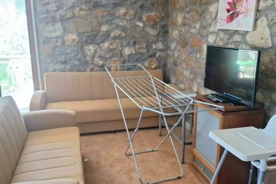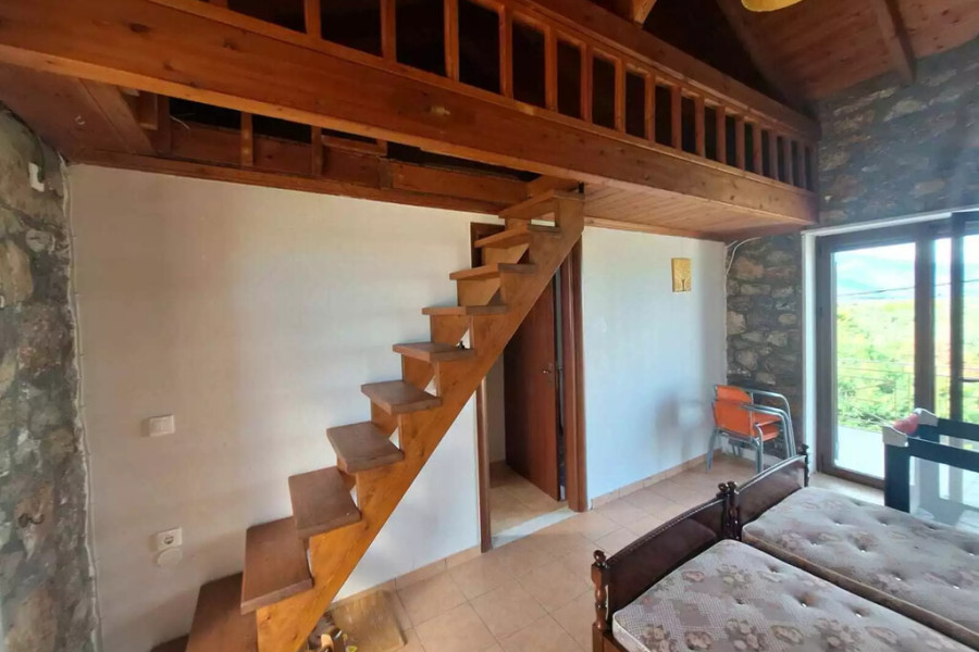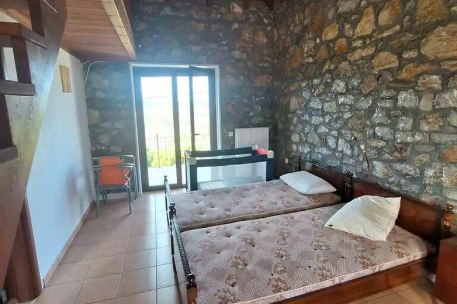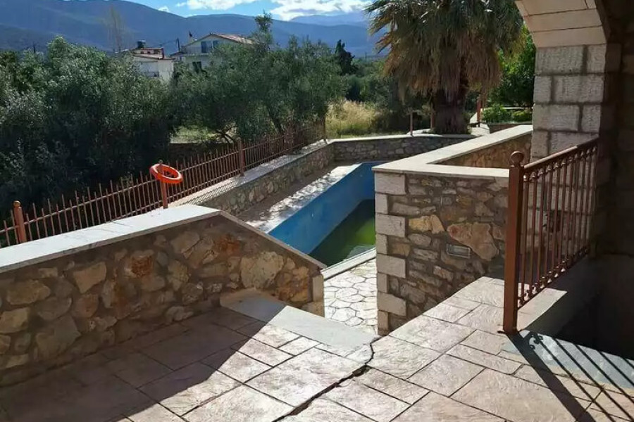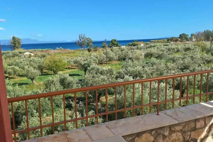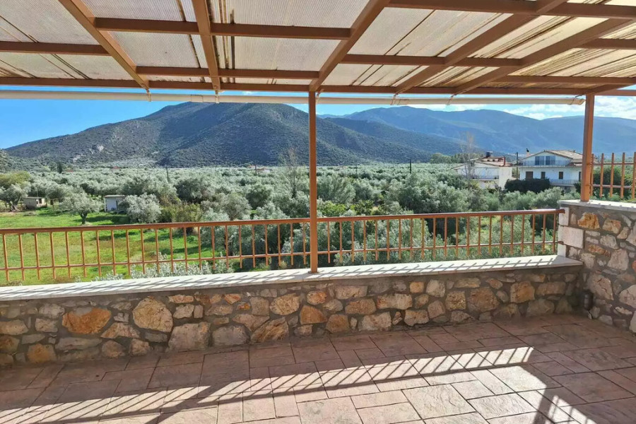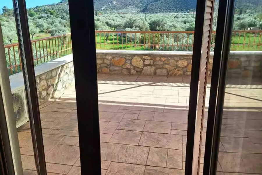 For sale maisonette of 117 sq.meters in Peloponnese. The maisonette has 2 levels. Erdgeschoss consists of living room, one kitchen, one shower WC. 1. Etage consists of 2 bedrooms, one shower WC. A magnificent view of the sea, the mountain opens up from the windows. There are: a fireplace, air conditioning, heating. The owners will be leaving the furniture with the sale. Extras included with the property: garage. The property boasts a shared swimming pool.