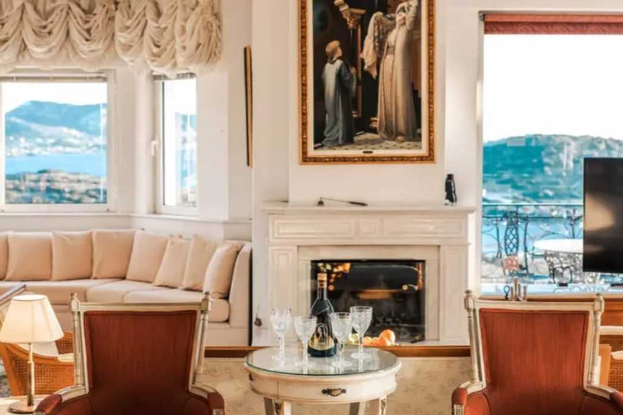 Two bedroomsTwo showers/WCThe villa offers stunning views of the sea, town, and mountains. Additionally, it features a fireplace, air conditioning, diesel heating, a barbecue area, and a security system. The exterior includes a 48 m² private swimming pool, landscaped garden, garage for two cars, and additional parking for two vehicles. The property is available furnished for an additional fee.