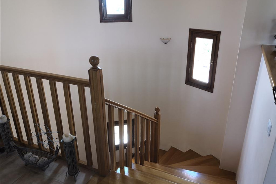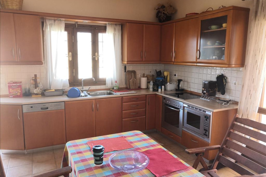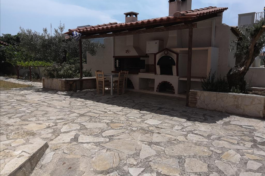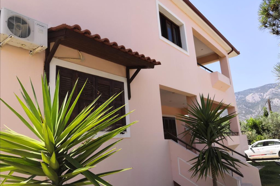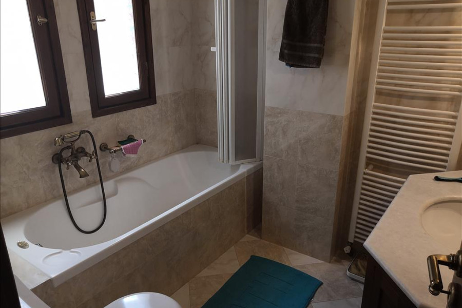 For sale 3-storey house of 376 sq.meters in Loutraki. Semi-Keller consists of one kitchen, one shower WC, 2 storerooms. Erdgeschoss consists of 3 bedrooms, 2 bathrooms. 1. Etage consists of one bedroom, living room with kitchen, one bathroom. A magnificent view of the city, the sea opens up from the windows. There are: solar panels for water heating, a fireplace, air conditioning, heating, a barbecue area. The owners will be leaving the furniture with the sale. There is an alarm system installed. Extras included with the property: parking space, garden.