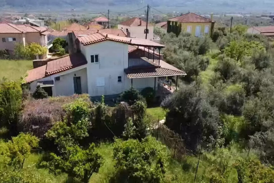 For sale 2-storey house of 155 sq.meters in Peloponnese. Erdgeschoss consists of one bedroom, living room, one kitchen, one WC, one storeroom. 1. Etage consists of 3 bedrooms, one shower WC. There are: solar panels for water heating, a fireplace, air conditioning, awnings, heating, a barbecue area. The owners will be leaving the furniture with the sale. There is an alarm system installed. Extras included with the property: parking space, garden.