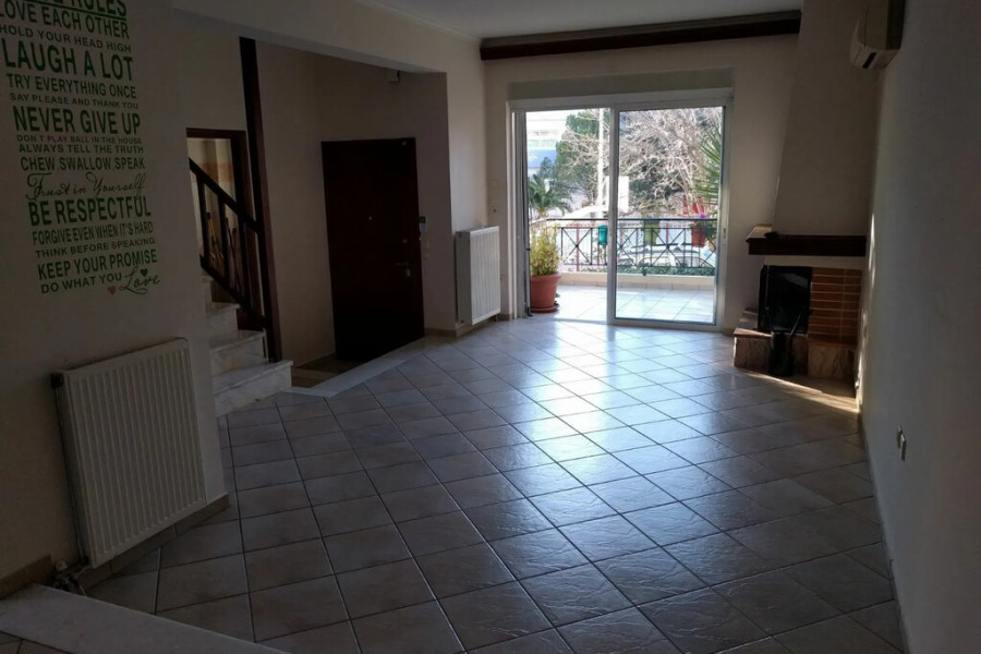 For sale maisonette of 170 sq.meters in Athens. The maisonette has 3 levels. Erdgeschoss consists of living room with kitchen, one kitchen, one WC. 1. Etage consists of 3 bedrooms, one shower WC. Loft consists of one bedroom, one WC. There are: solar panels for water heating, a fireplace, air conditioning, awnings, heating. Extras included with the property: garden.