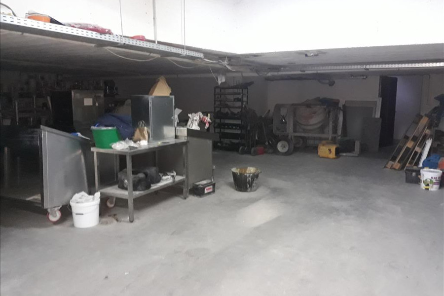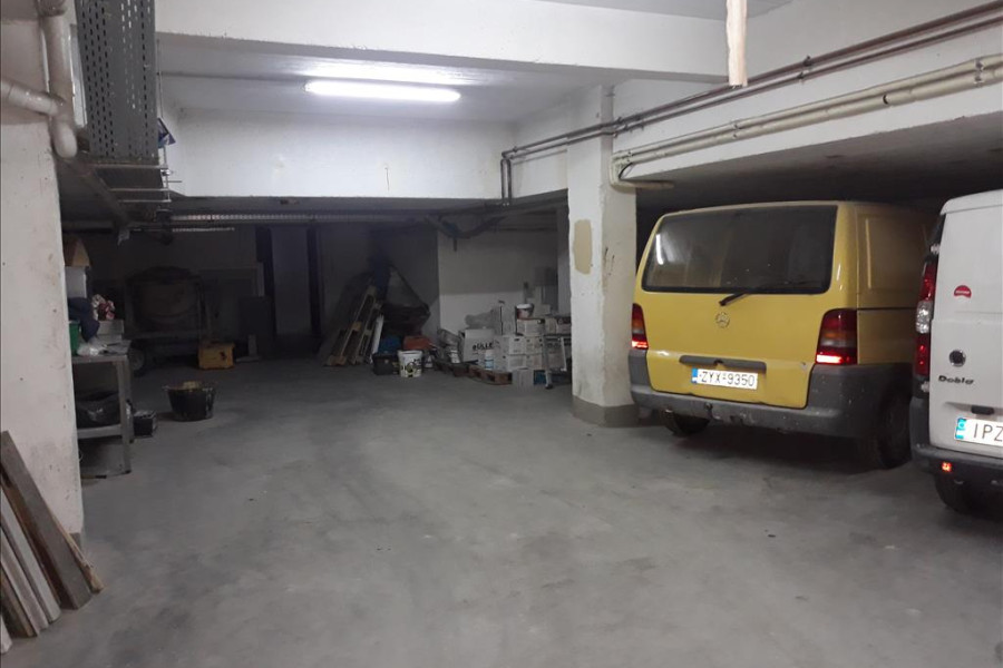 a basement floor of 330 sqm which is used as a parking and as a storage space a ground floor with 3 separated stores ( 44 sqm, 48 sqm,45 sqm) a first floor with also 2 separated stores ( both 45 sqm) and one flat ( 45 sqm)On the ground floor one of the stores is rented until 2024 for a monthly rent of 650 euros