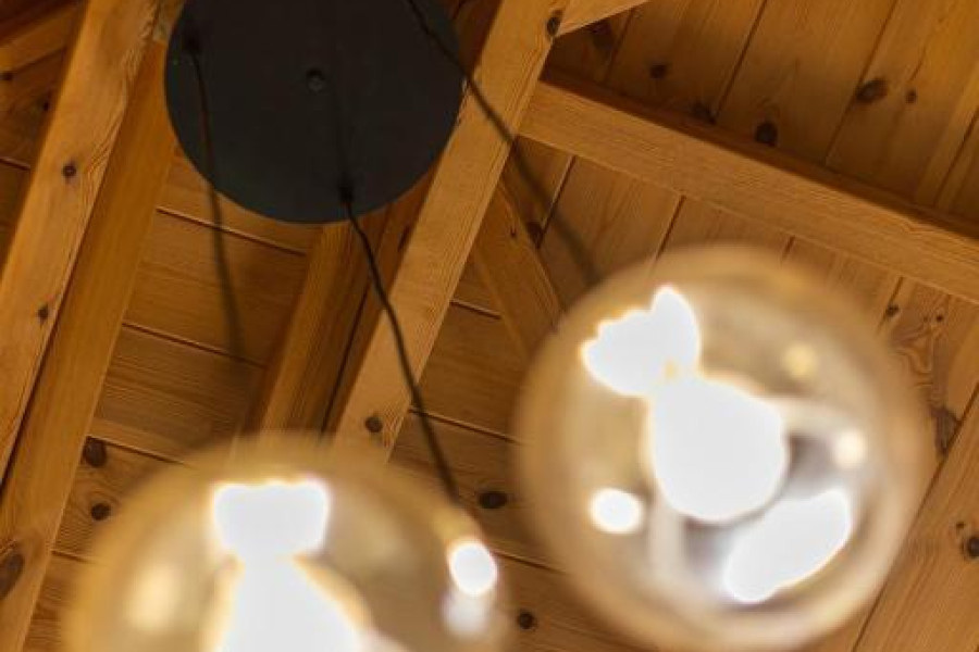 First FloorThe top floor mirrors the lower levels in layout, comprising a cozy open-plan living room with kitchen and dining, a bedroom, and a bathroom. High wooden ceilings, exposed beams, and panoramic views from the balcony add charm and a distinct sense of space and light.