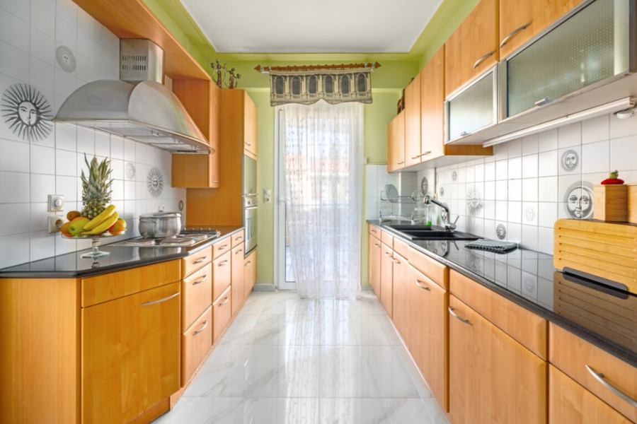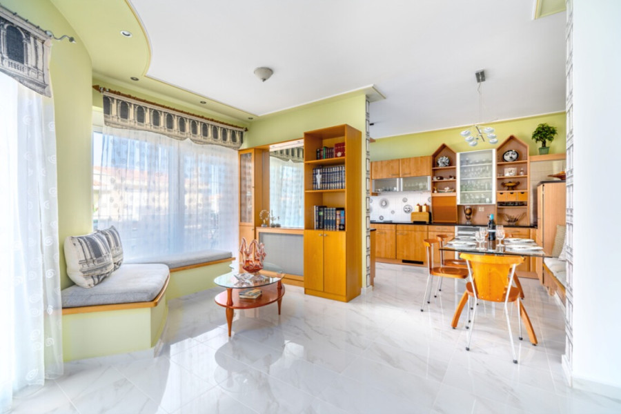 📍 Location & AccessArea: Chalkida, Evia Island (mainland coast)From Athens: 40 minutesFrom International Airport (ATH): 1 hourTo the Sea: 40 metersTo the Beach: 100 metersNearby: Shops, supermarkets, 3 km seaside promenade, cafes, tavernas📐 Key FeaturesLiving area: 312 sq.m.Floors: 3 (each with two levels)Bedrooms: 4Bathrooms: 4Year Built: 1997Renovated: 2018Elevator: Internal, 6 stopsMarble StaircaseSea View: Unobstructed🛋️ Layout OverviewGround Floor (semi-basement)