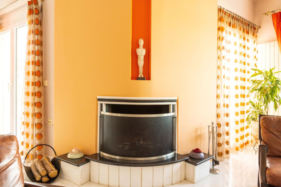 Master suite with painted ceiling by iconographerLiving room with fireplaceDining area & elevated lounge spaceEnsuite bathroom & dressing roomBalcony with panoramic sea views🛠️ AmenitiesFully furnishedTriple-function solar water heater with boilerFireplaceAir conditioningOil heating (radiators)Reinforced aluminum frames (Doral) with double glazingSecurity systemOutdoor showerLandscaped garden with lawnPrivate garage🌟 HighlightsPeaceful coastal living with city convenienceUnique architecture & elegant interior designWalking distance to two sandy beaches & 10 minutes to beach barsPerfect for permanent residence or holiday retreat💰 Price€700,000 (reduced from €830,000)