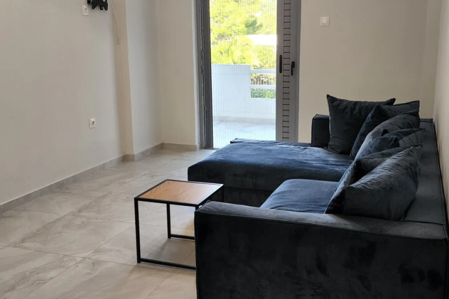 Located in a quiet, green neighborhood of Vari, less than 1 km from the beach, this beautifully renovated and fully furnished 60 sq.m. apartment is situated on the 1st floor of a well-maintained neoclassical-style building.