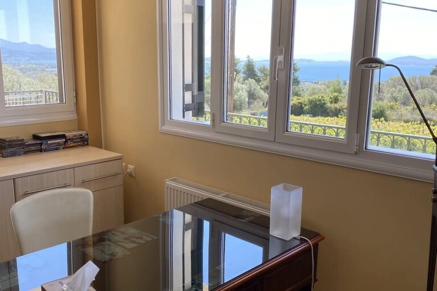 For sale 2-storey house of 150 sq.meters on the Euboea island . A magnificent view of the sea, the mountain, the forest opens up from the windows. There are: solar panels for water heating, a fireplace, air conditioning, heating, a barbecue area. The owners will be leaving the furniture with the sale. There is an alarm system installed. Extras included with the property: parking space, garden.