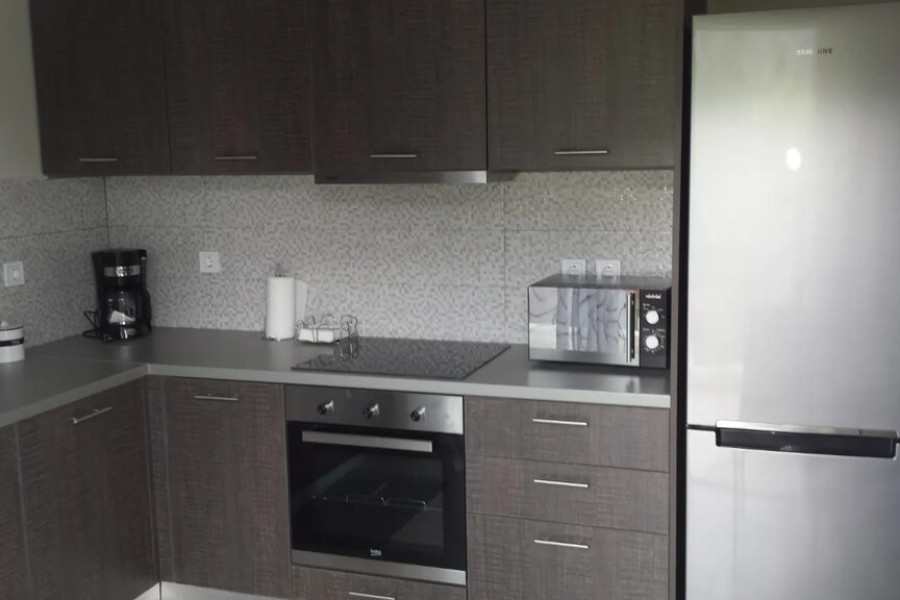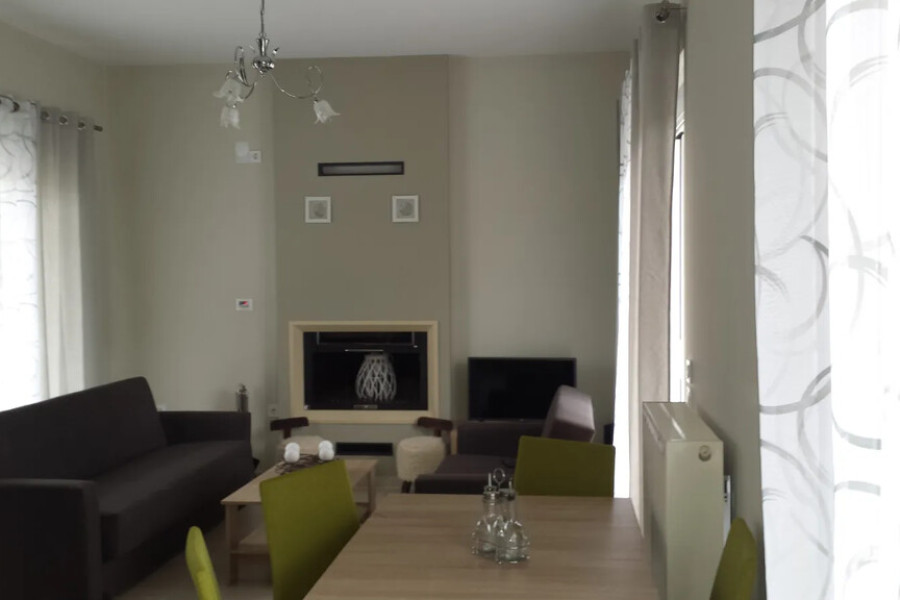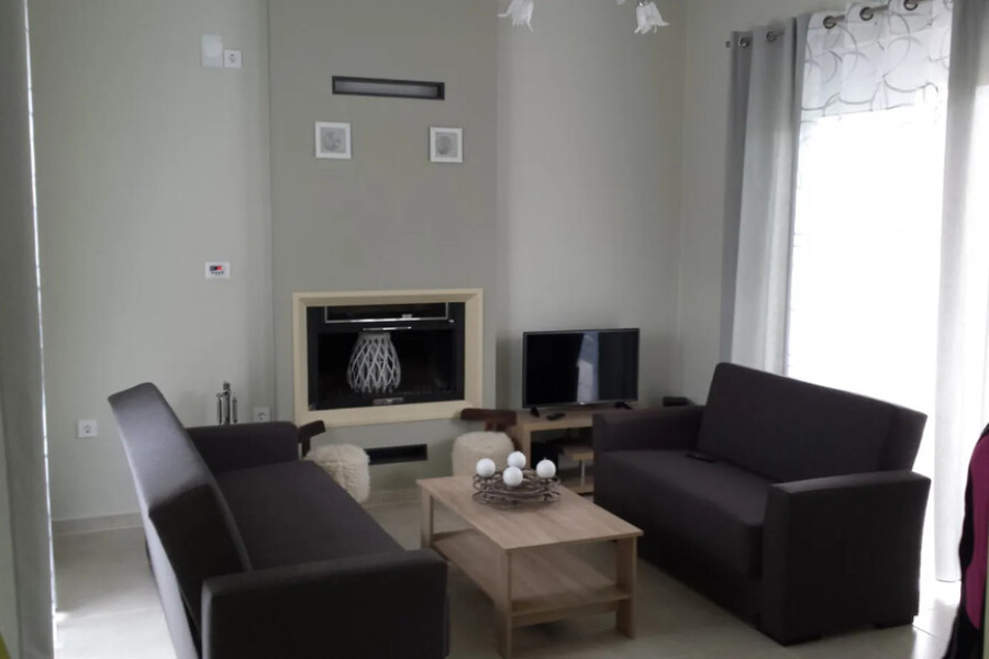 🔸 Maisonette – 92 sq.m.Ground floor: Open-plan living and dining area with an energy-efficient fireplace, fully equipped kitchen, storage room, and WC.Upper floor: Two comfortable bedrooms, full bathroom, and a 16 sq.m. semi-covered veranda overlooking the garden.✅ Features & AmenitiesFully furnished with electrical appliances (fridge, washing machine, dishwasher, oven, microwave)Solar water heater, boiler heating system with woodA++ air-conditioning units in all areas, TVs in all roomsStorage room, internal staircase, security doorFront yard & private garden, private parkingThe property enjoys a south orientation and peaceful surroundings, with proximity to:
