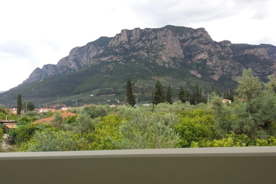 For sale 3-storey house of 132 sq.meters in Peloponnese. Semi-Keller consists of one bedroom, living room with kitchen, one kitchen, one shower WC. Erdgeschoss consists of living room with kitchen, one kitchen, one WC, one storeroom. 1. Etage consists of 2 bedrooms, one shower WC. A magnificent view of the mountain opens up from the windows. There are: solar panels for water heating, a fireplace, air conditioning, heating, a barbecue area. The owners will be leaving the furniture with the sale. There is an alarm system installed. Extras included with the property: parking space, garden.
