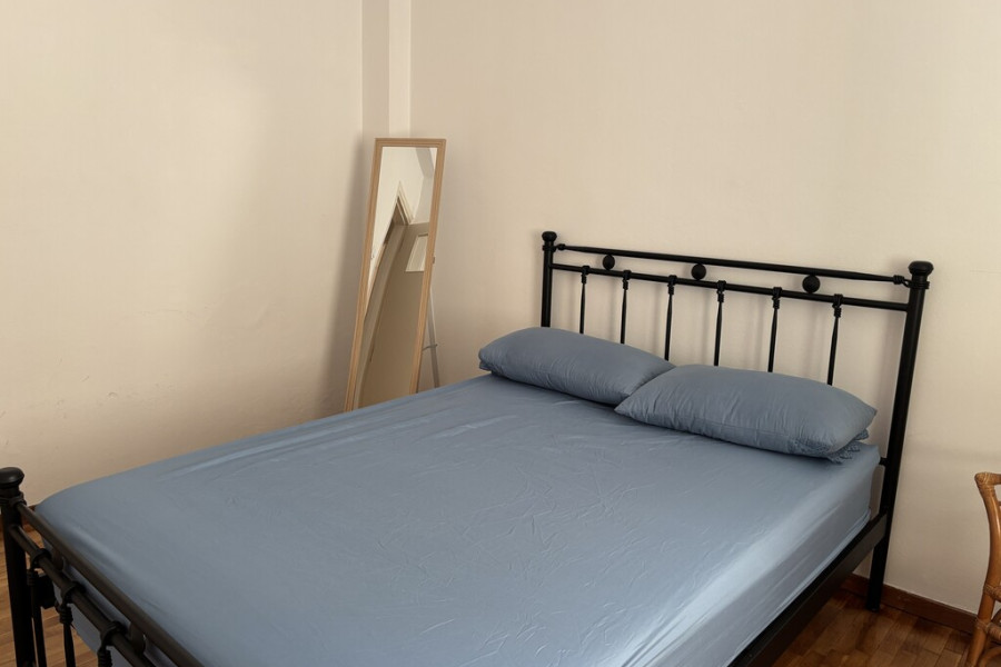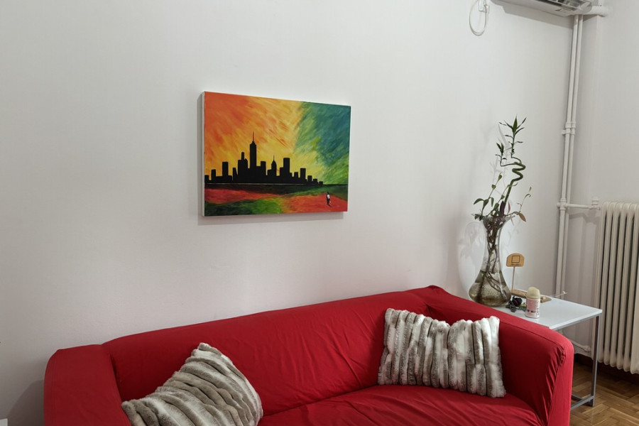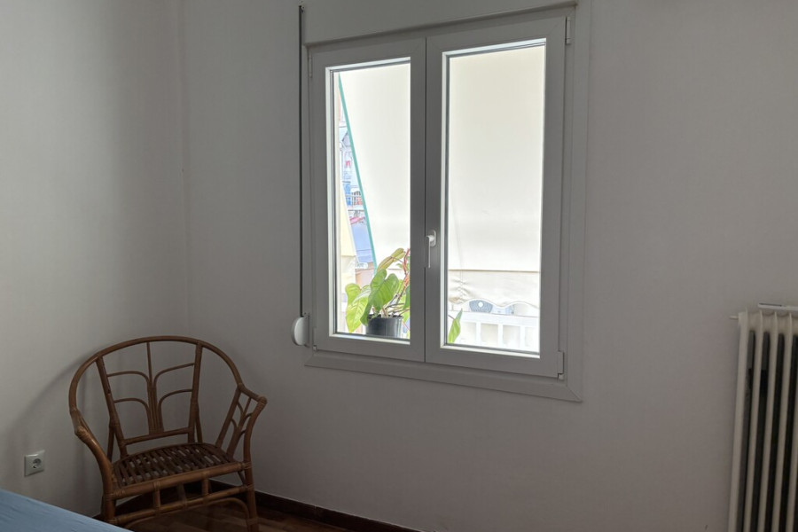Comfortable bedroom with wardrobe and large windowCozy living room with access to a balcony facing the streetFully equipped kitchen with electric stove, refrigerator, and washing machineModern bathroom with shower cabinCentral heating (oil) and air conditioningSecurity door, PVC frames with double glazingHighlights: