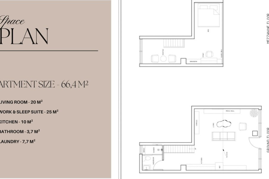 Property FeaturesTotal area: 66.4 sq.m.Ground floor: 41 sq.m.Mezzanine: 25 sq.m.Layout:Spacious open-plan living room and kitchenMezzanine bedroom suite with a dedicated workspace1 bathroomLaundry areaFully furnished and equippedHigh-quality materials and modern amenitiesLarge windows – natural light & minimal designLocation – KallitheaPrime location, just: