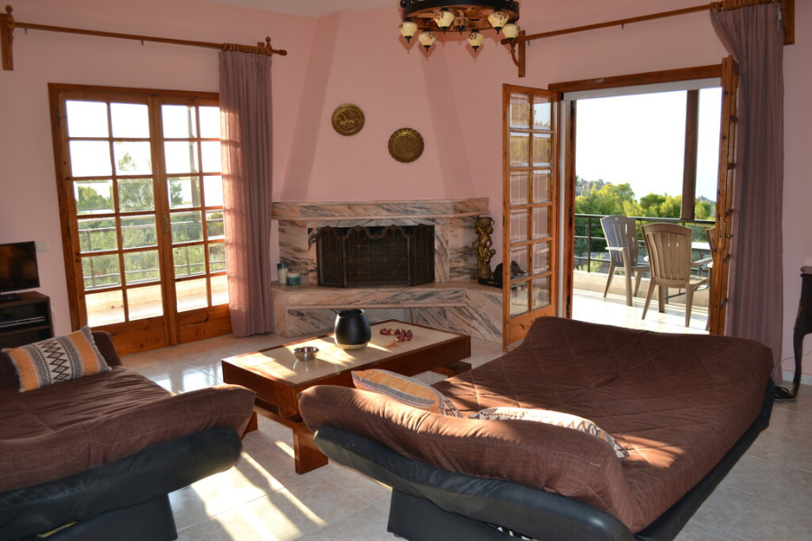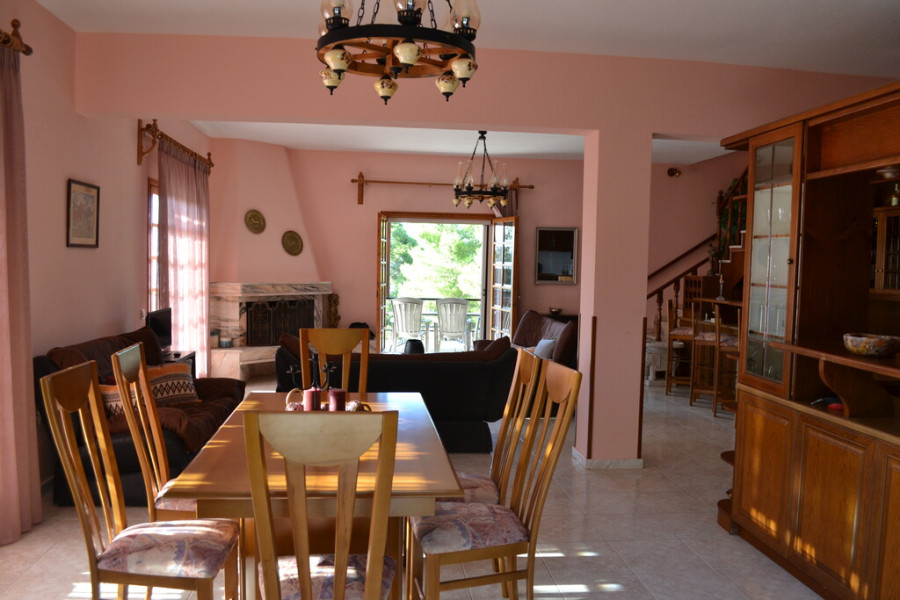 For sale 3-storey villa of 320 sq.meters in Loutraki. Erdgeschoss consists of 2 bedrooms, living room, one kitchen, one bathroom, one gym. 1. Etage consists of 2 bedrooms, living room, one kitchen, one bathroom. 2. Etage consists of one bedroom, living room, one bathroom, one office. A magnificent view of the sea, the mountain, the forest opens up from the windows. There are: a fireplace, heating. The owners will be leaving the furniture with the sale. There is an alarm system installed. Extras included with the property: parking space, garden. The property boasts a swimming pool of private use.
