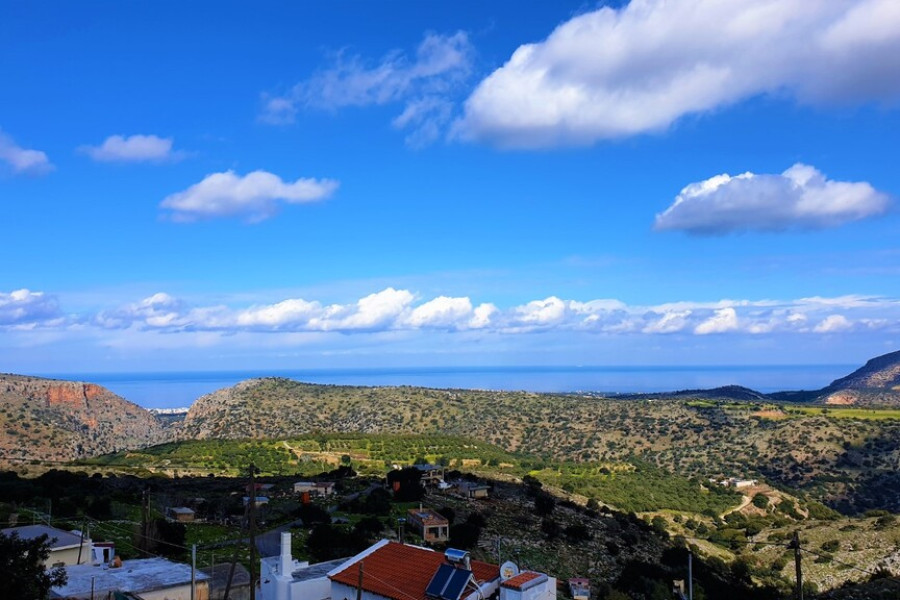 In the peaceful and picturesque area of Kalo Chorio, Gouves, a 68 sq.m. detached house is available for sale on a 330 sq.m. plot, featuring a private garden and wonderful unobstructed sea views.