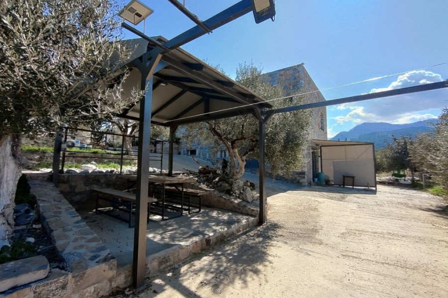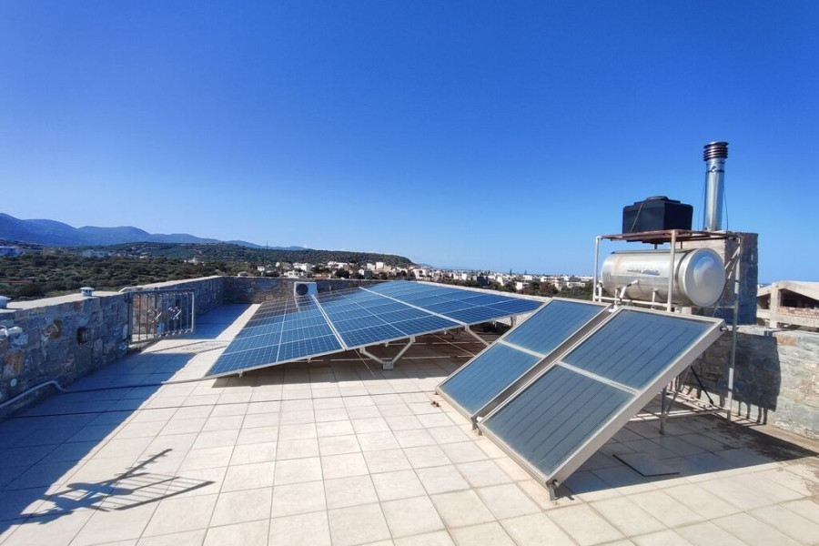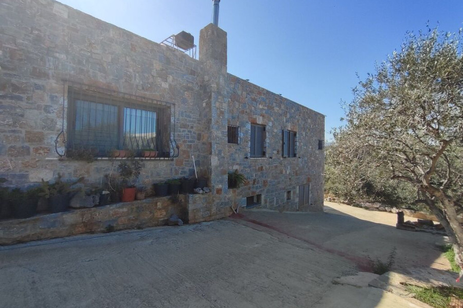 For sale stone detached house with a total area of 288 sq.m. for ground floor and basement, with stunning sea views in northeastern Crete. The main house consists of 4 bedrooms (1 has a private bathroom), 1 bathroom, storage room, laundry room, open plan kitchen with dining area and living room with fireplace. There is also a separate apartment with 1 bedroom, 1 bathroom and open plan kitchen with living room. The basement is currently used as a storage room, but can be converted into a gym, playroom, etc. Photovoltaics are available on the roof. There is a building permit for the addition of a swimming pool and attic.