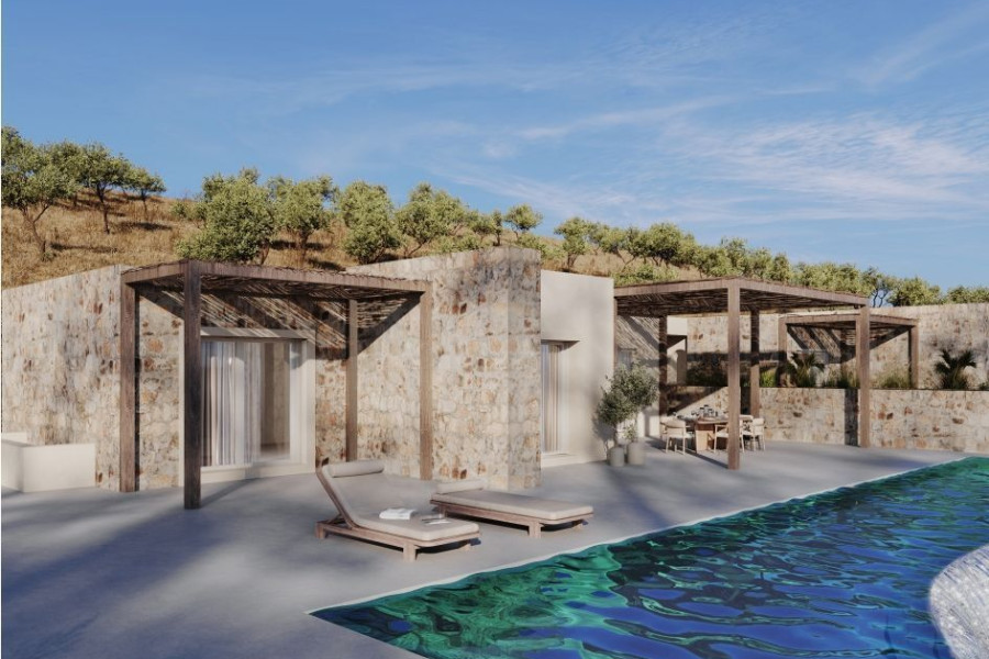 Two beautiful villas 1000m from the sea. The properties are sold off plan, with a ready building permit and will be delivered within one year of the down payment. Each house is 100sq.m ground floor and 42sq.m basement, on a 2000sq.m plot. The ground floor consists of 2 bedrooms, 2 bathrooms and an open plan kitchen-living room and dining room. The basement can easily be converted into a studio. An internal staircase connects the basement to the ground floor. Each house has a terrace, a 40sq.m swimming pool and a beautifully landscaped outdoor area. It is sold unfurnished but with electrical appliances and A/C. The houses have a wonderful sea view! The price is per house.