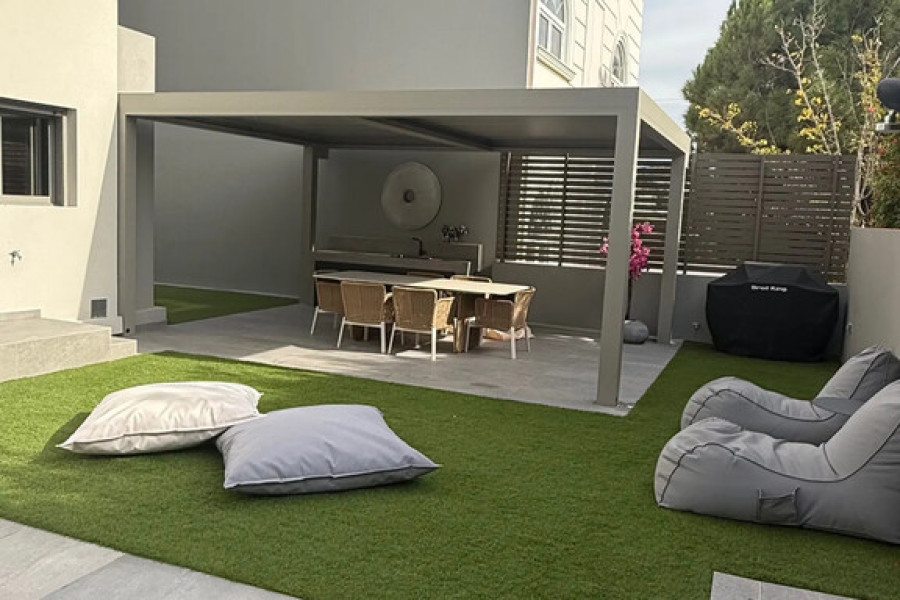 Outdoor areas & amenitiesThe private garden of 290 sq.m. is an exceptional relaxation retreat, featuring a large illuminated swimming pool, a pergola with barbecue, outdoor furnishing, and ambient night lighting.