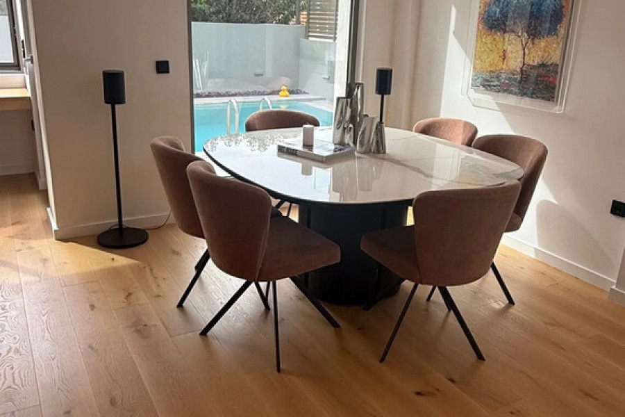 Technical features & equipmentEnergy class A+Underfloor heatingHeat pumpThree-phase electricityAir conditioningSolar water heaterFull smart-home systemAlarm & security camerasAluminium frames with insect screensWooden flooringElevatorSecurity doorWheelchair accessBright, airy and dual-aspectPet-friendlySuitable for investment or professional useMonthly communal fees: €50A premium residence of superior construction, spacious design and rare privacy, located in one of Voula’s most privileged areas.