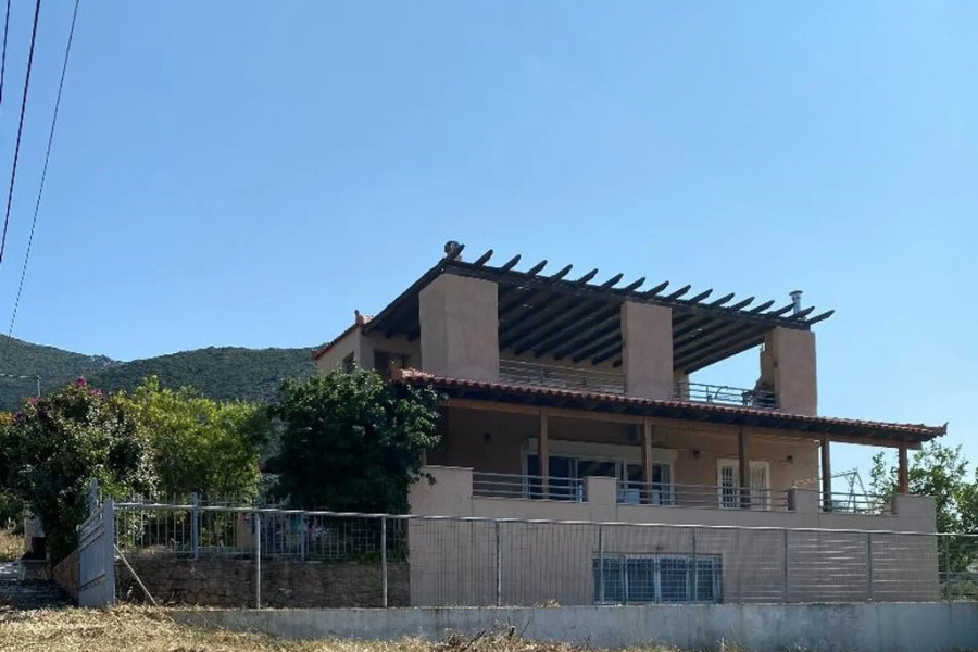 For sale 3-storey house of 220 sq.meters on the Euboea island . Semi-Keller consists of one bedroom, one bathroom, one storeroom. Erdgeschoss consists of 3 bedrooms, living room with kitchen, one kitchen, one shower WC. 1. Etage consists of one bedroom, living room with kitchen, one kitchen, one shower WC. A magnificent view of the sea, the mountain opens up from the windows. There are: solar panels for water heating, a fireplace, air conditioning, awnings, heating, a barbecue area. The owners will be leaving the furniture with the sale. Extras included with the property: parking space, garden.