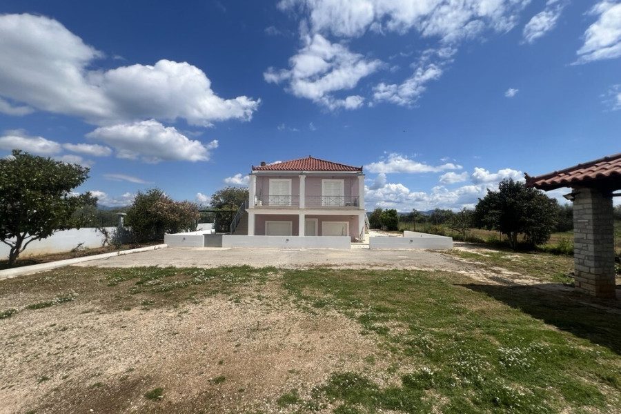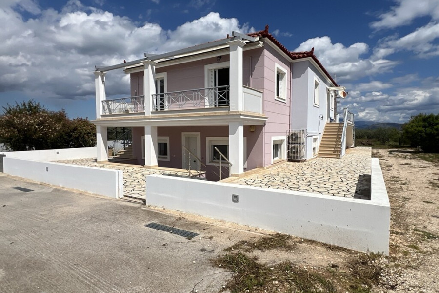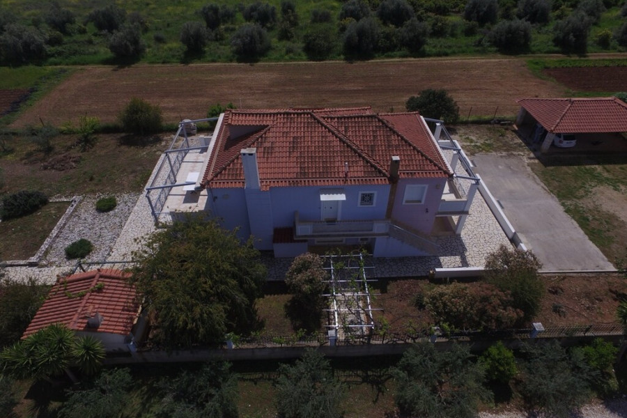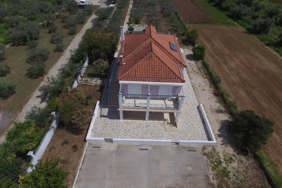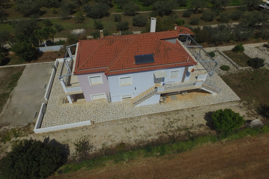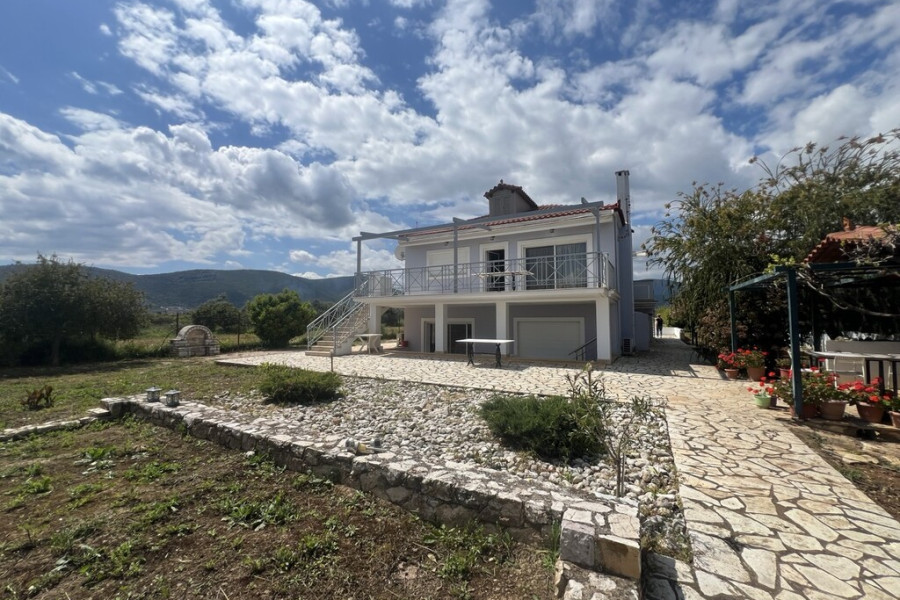 For sale 2-storey villa of 240 sq.meters in Eastern Peloponnese. Erdgeschoss consists of 4 bedrooms, living room with kitchen, one bathroom. 1. Etage consists of 3 bedrooms, living room with kitchen, one bathroom, one shower WC. A magnificent view of the city, the sea, the mountain, the forest opens up from the windows. There are: solar panels for water heating, a fireplace, air conditioning, awnings, heating, a barbecue area. There is an alarm system installed. Extras included with the property: parking space, garden.