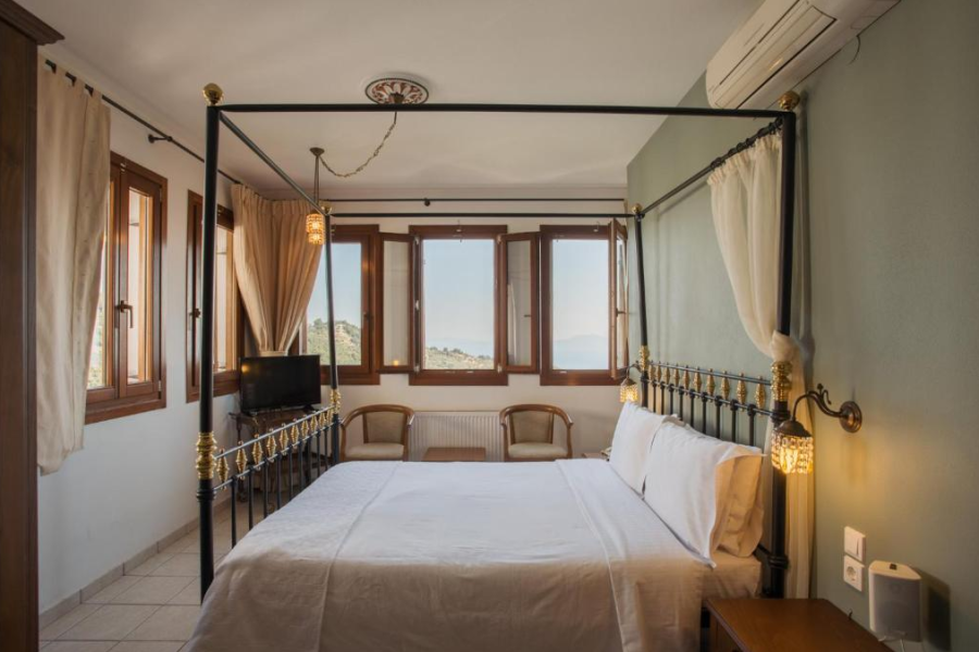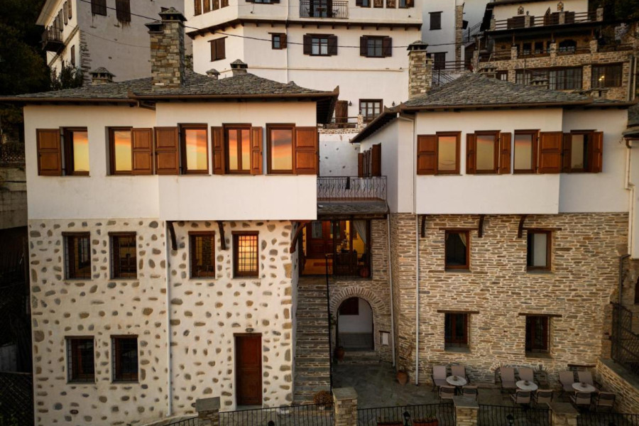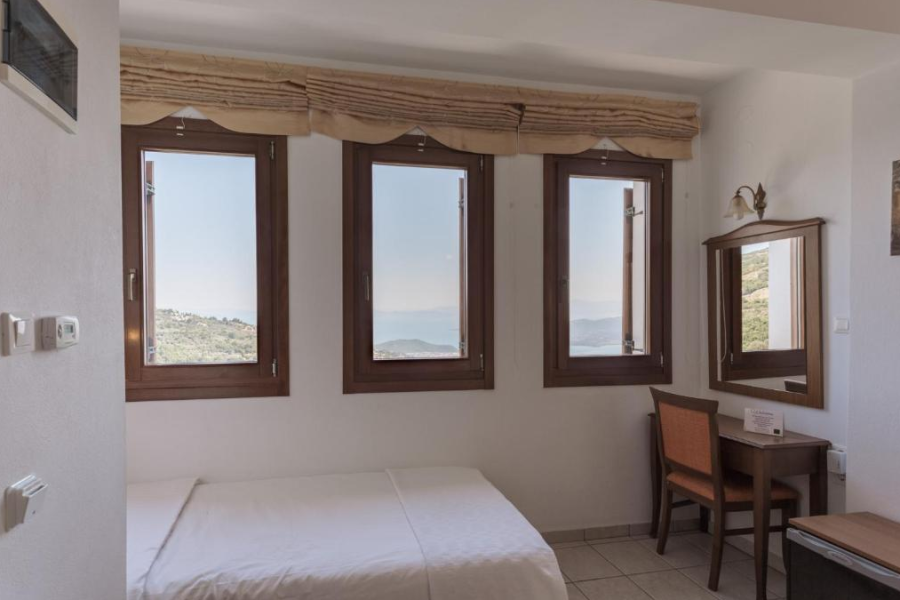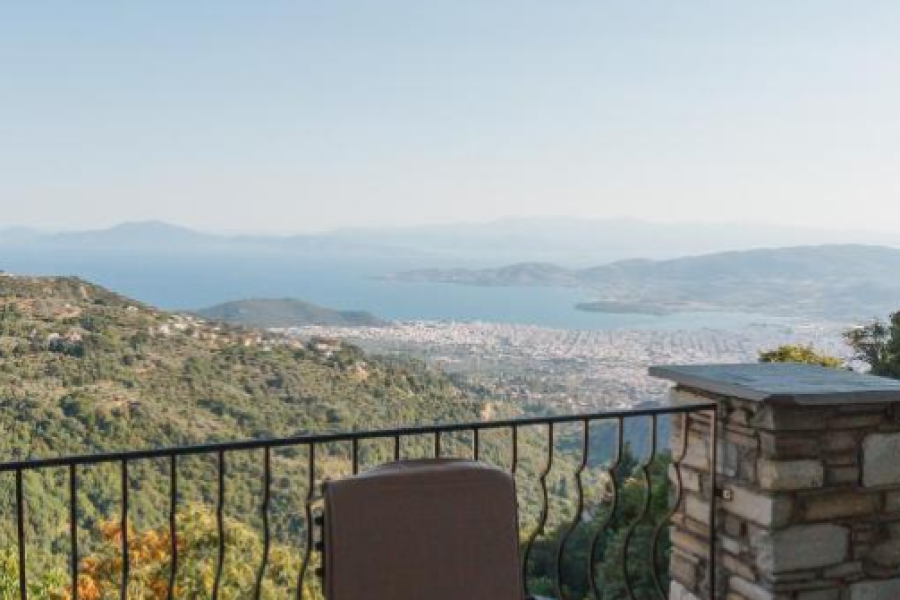 Hotel 484 sqm on a plot 935 sqm for sale in Makrinitsa, Pelion. The hotel cosists of three levels. On the ground floor, there are three bedrooms with bathrooms, a bathroom, and a storage room. An internal staircase leads to the first floor, where you’ll find the reception area, a sitting area with a bar and kitchen, as well as two bedrooms with bathroom. The second floor features five bedrooms with bathrooms. The property offers stunning views of the Pagasitic Gulf, both from the courtyard and the rooms, and includes parking space. It is ideal for a Golden Visa.