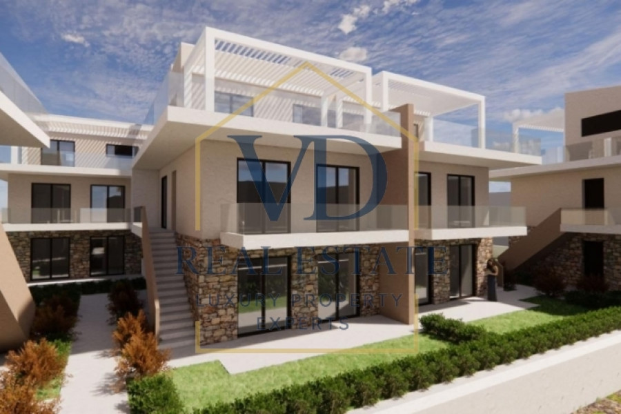 Property Code: 5-1228 - Apartment FOR SALE in Sithonia Center for € 225.000 . This 58.00 sq. m. Apartment is on the Ground floor and features 2 Bedrooms, Livingroom, Kitchen, bathroom . The property also boasts garden. The building was constructed in 2025 Distance from sea 50 meters, Distance from nearest airport: 68000 meters,