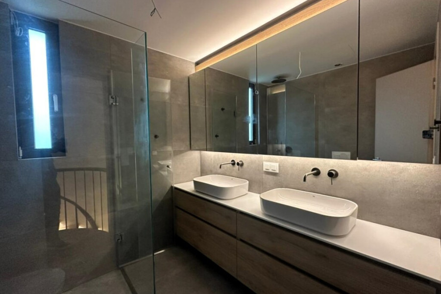 The handcrafted internal staircase and the premium Italian wooden flooring featured on both levels enhance the residence’s elegant character. The spacious living room, functional kitchen and additional auxiliary spaces ensure comfort and practicality, while the three large bedrooms with ample wardrobes fully meet the needs of a modern family.