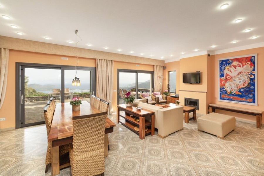 A magnificent view of the city, the sea, the mountain opens up from the windows. There are: solar panels for water heating, a fireplace, air conditioning, heating. The owners will be leaving the furniture with the sale. Extras included with the property: parking space, garden. The property boasts a swimming pool of private use.