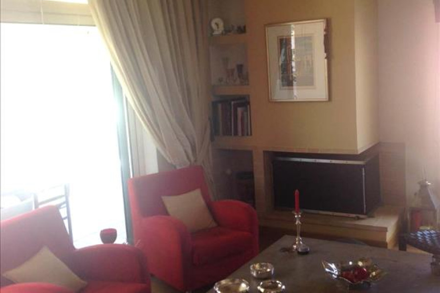 For sale duplex of 173 sq.meters in Athens. The duplex is situated on 4. etage and 5. etage. 4. Etage consists of 2 bedrooms, living room with kitchen, living room, one bathroom, one WC. 5. Etage consists of one bedroom, one kitchen, one bathroom. A magnificent view of the city, the mountain opens up from the windows. There are: solar panels for water heating, a fireplace, air conditioning, awnings, heating. The owners will be leaving the furniture with the sale. Building has an elevator. There is an alarm system installed. Extras included with the property: parking space.