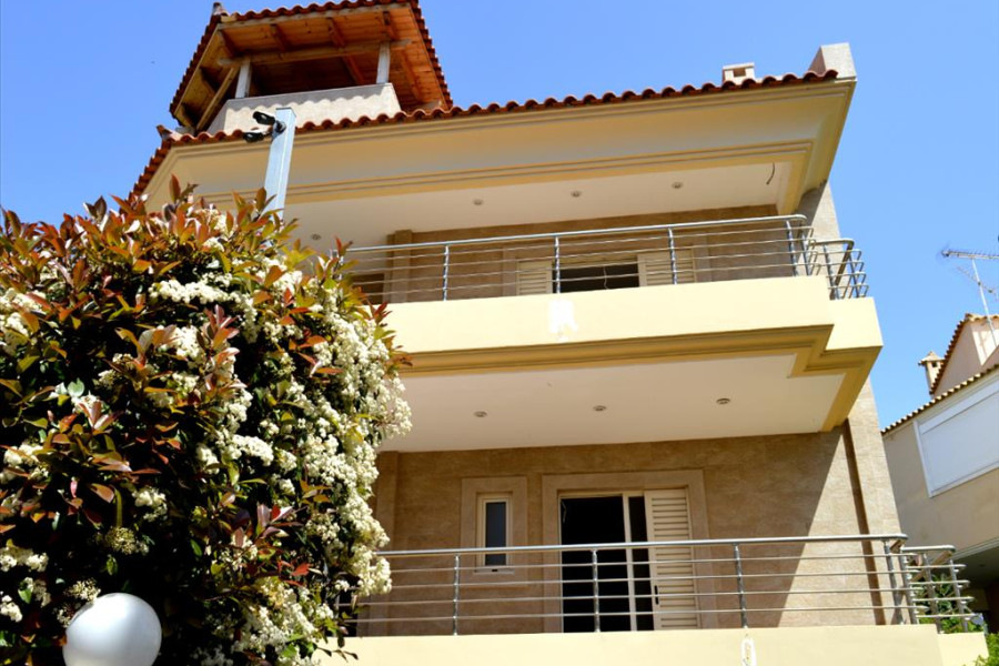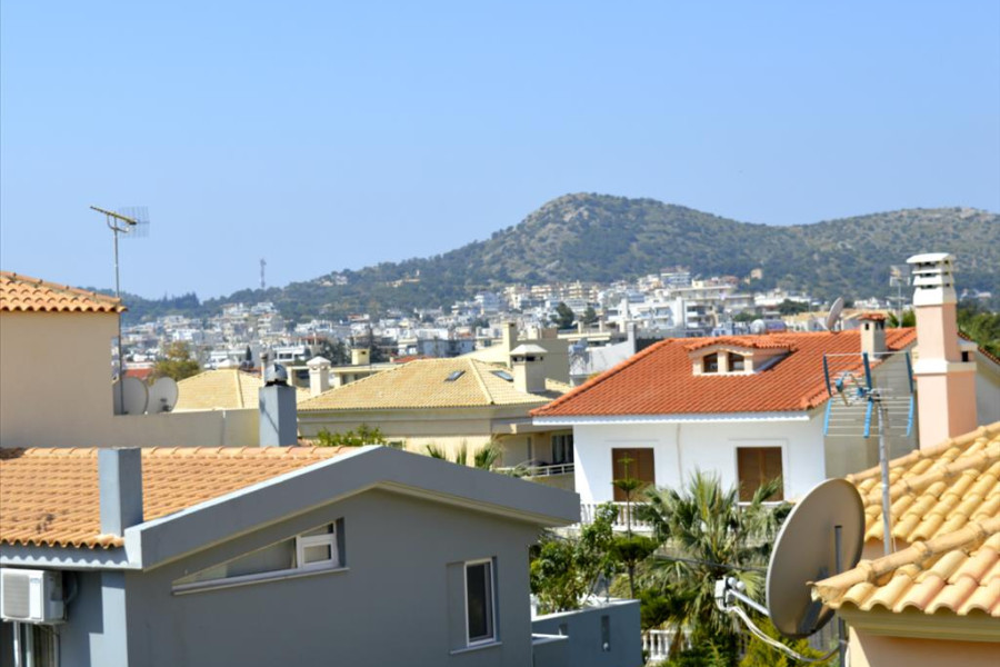 For sale 3-storey house of 213 sq.meters in Athens. Erdgeschoss consists of living room with kitchen, one bathroom, one storeroom. 1. Etage consists of 3 bedrooms, 2 bathrooms. 2. Etage consists of living room with kitchen, one bathroom. A view of the city, the sea, the mountain opens up from the windows. There are: solar panels for water heating, a fireplace, air conditioning, heating, a barbecue area. The owners will be leaving the furniture with the sale. Building has an elevator. There is an alarm system installed. Extras included with the property: parking space, garden. The property boasts a swimming pool of private use.